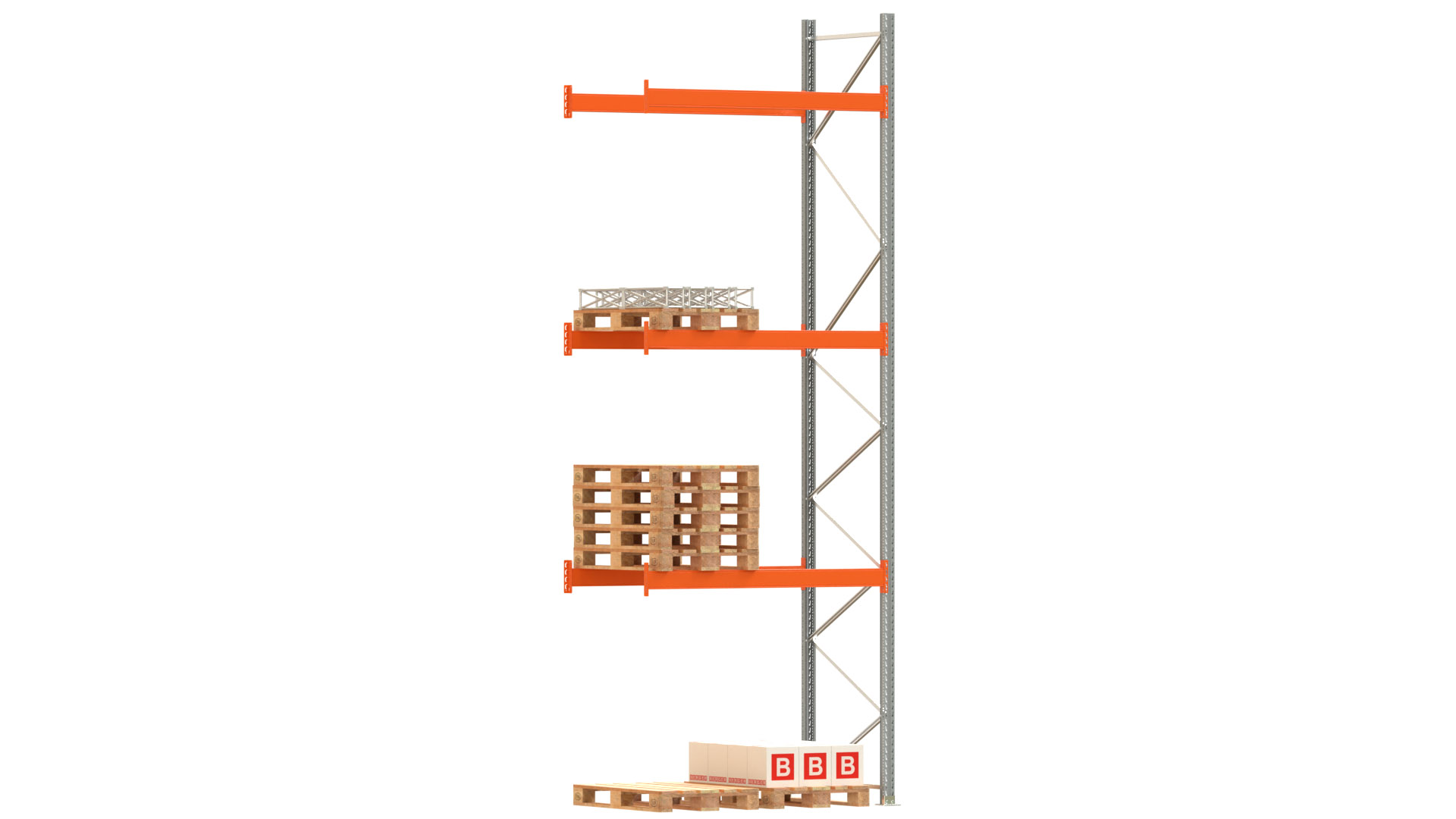 Palettenregal ARTUS - Anbaufeld - Breite 198,5 cm - Höhe 550 cm - Tiefe 110 cm - 3 Träger Ebenen