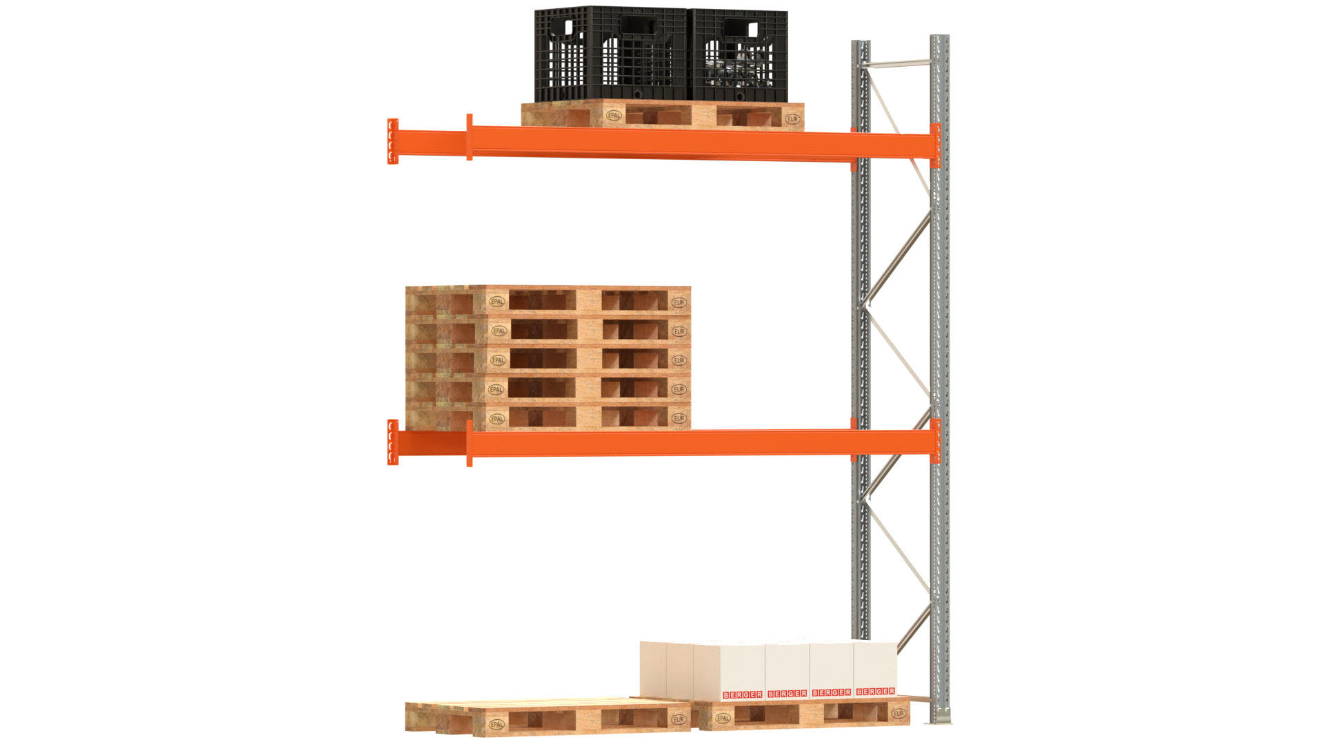 Palettenregal ARTUS - Anbaufeld - Breite 278,5 cm - Höhe 350 cm - Tiefe 80 cm - 2 Träger Ebenen