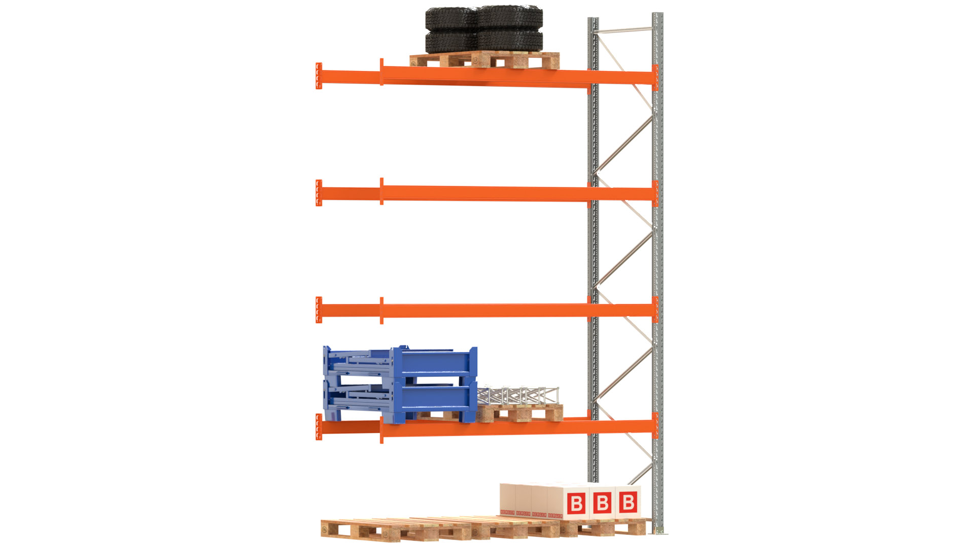 Palettenregal ARTUS - Anbaufeld - Breite 278,5 cm - Höhe 450 cm - Tiefe 110 cm - 4 Träger Ebenen