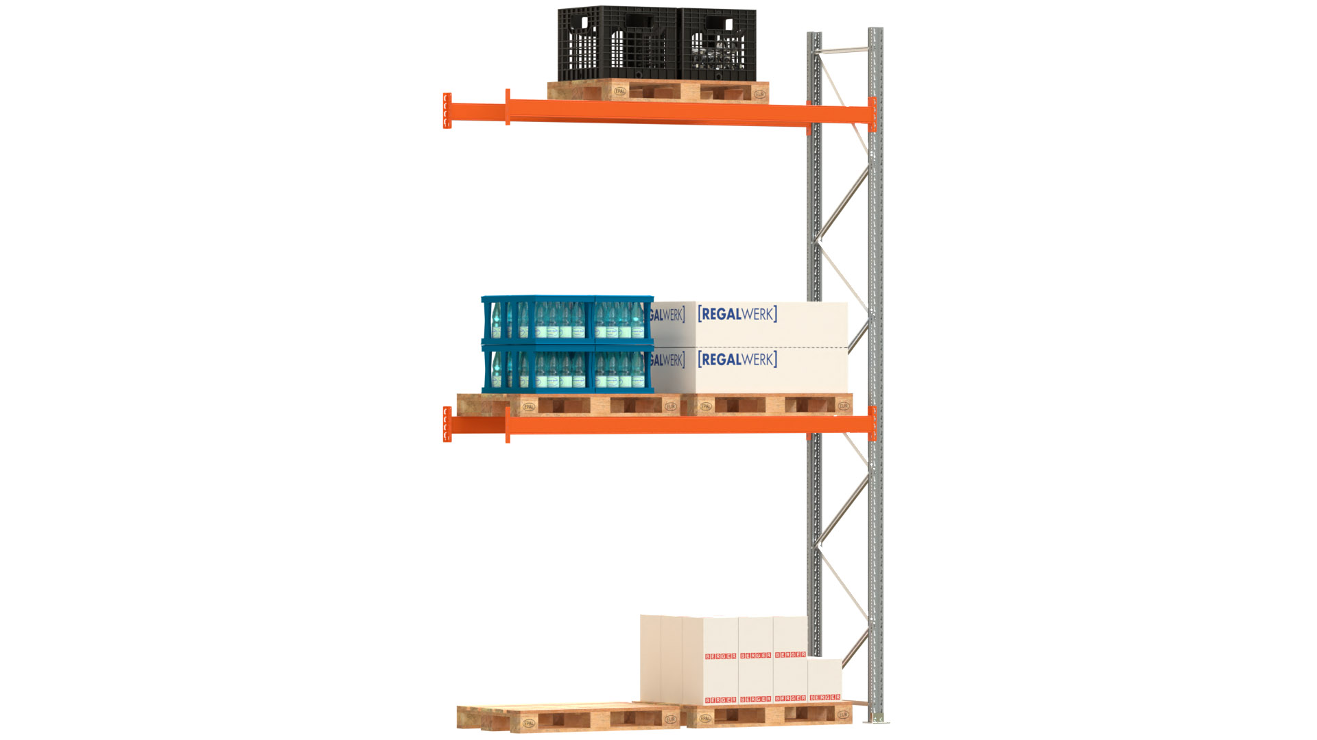 Palettenregal ARTUS - Anbaufeld - Breite 278,5 cm - Höhe 450 cm - Tiefe 80 cm - 2 Träger Ebenen