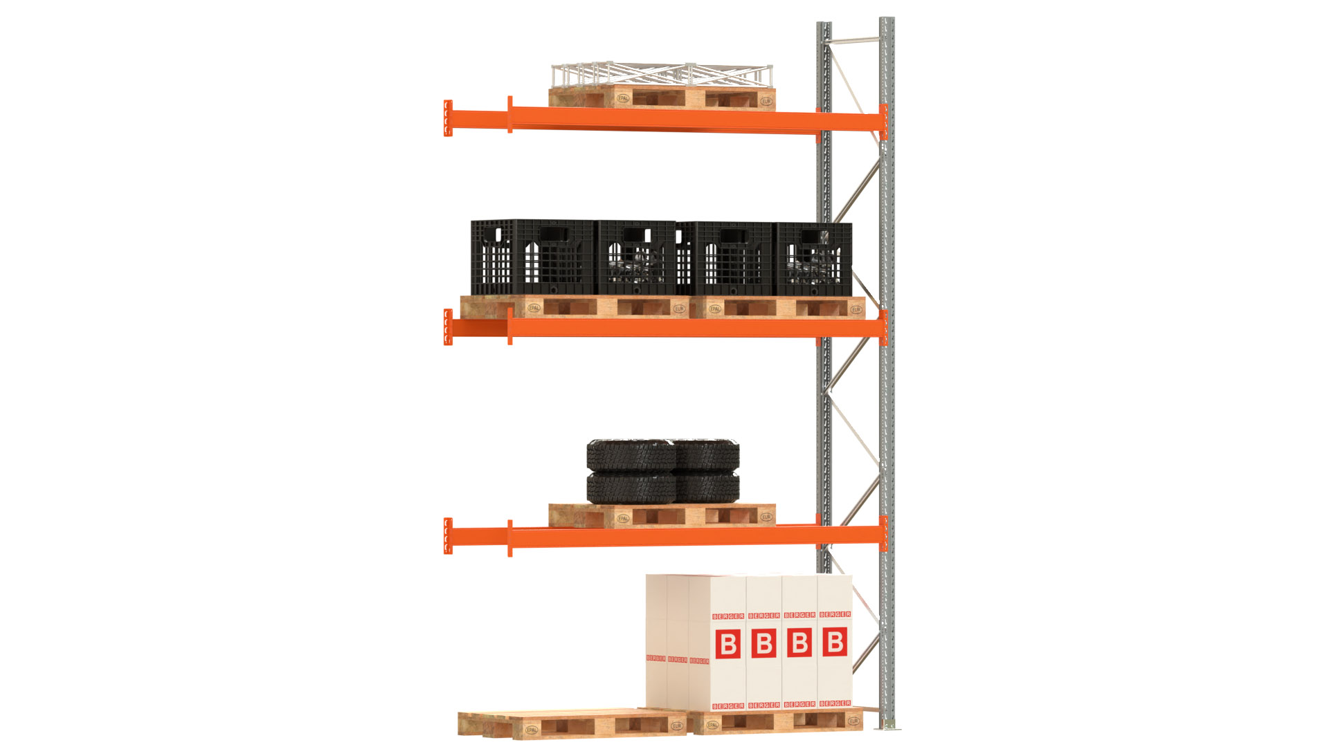 Palettenregal ARTUS - Anbaufeld - Breite 278,5 cm - Höhe 450 cm - Tiefe 80 cm - 3 Träger Ebenen