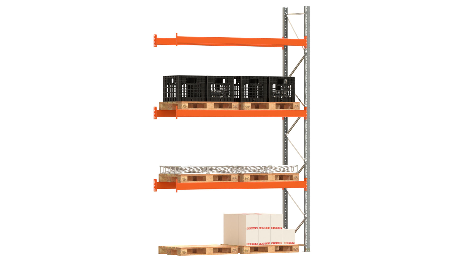 Palettenregal ARTUS - Anbaufeld - Breite 278,5 cm - Höhe 450 cm - Tiefe 80 cm - 3 Träger Ebenen