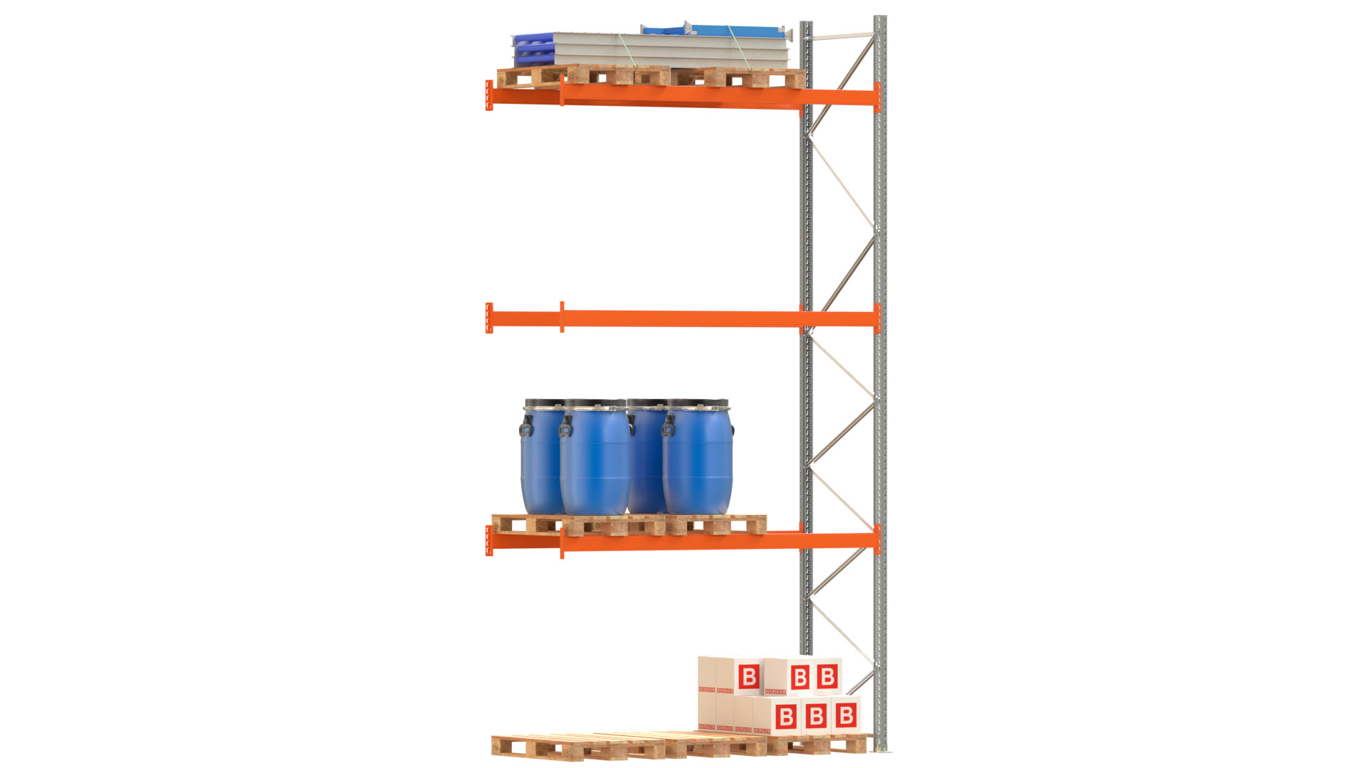 Palettenregal ARTUS - Anbaufeld - Breite 278,5 cm - Höhe 550 cm - Tiefe 110 cm - 3 Träger Ebenen