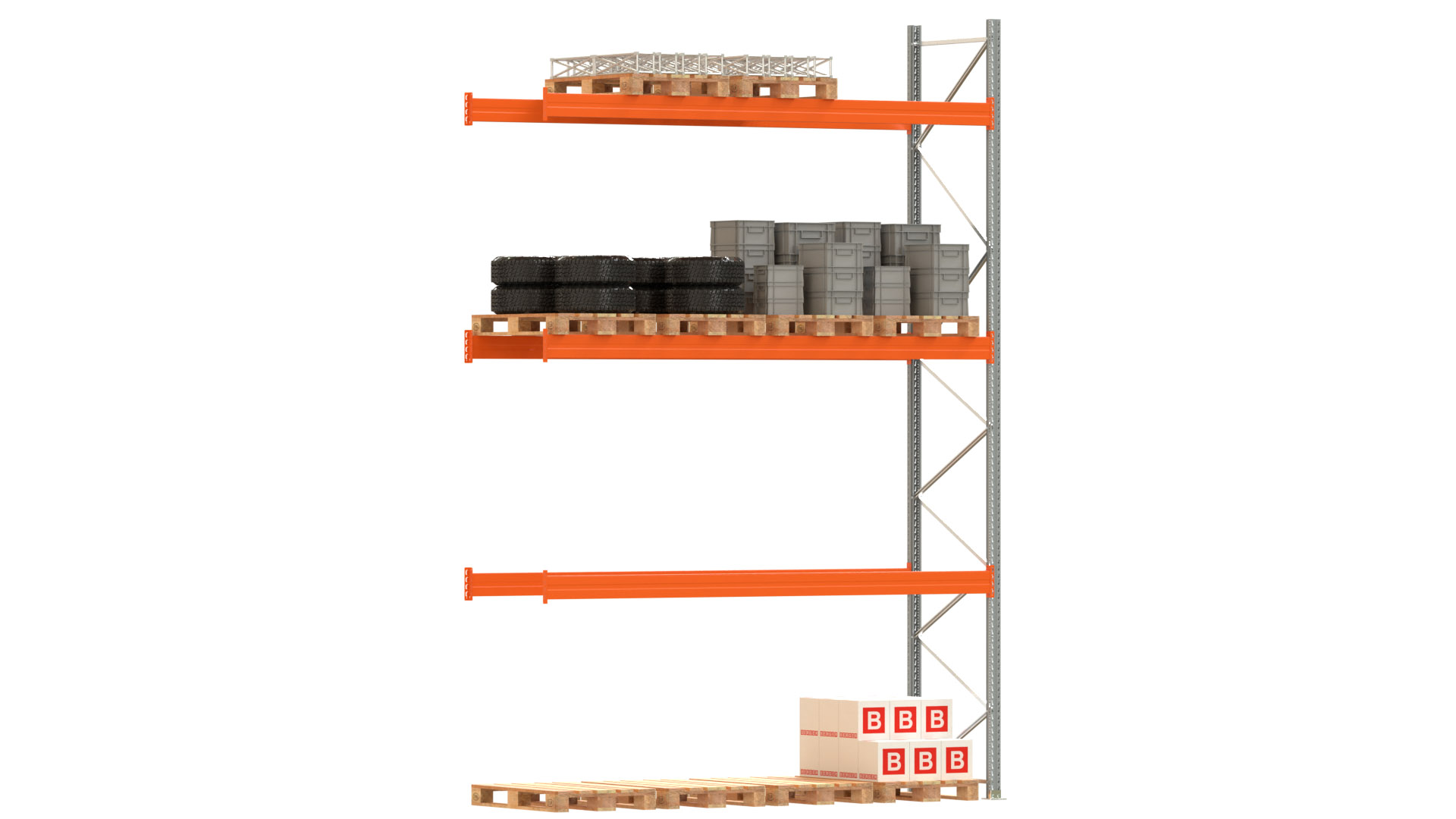 Palettenregal ARTUS - Anbaufeld - Breite 368,5 cm - Höhe 550 cm - Tiefe 110 cm - 3 Träger Ebenen