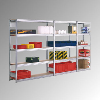 Dieses Schnellbausystem ist auf die Einlagerung von leichten und mittleren Lasten ausgelegt. Seine schnelle und einfache Montage wird durch weitgehend steckbare Regalkomponenten möglich. Es ist ein universell einsetzbares Fachbodenregal für alle Anwendungen in Lager, Büro und Archiv und überzeugt durch vielfältige Funktionalität, modernes Design und einen hohen Qualitätsstandard.