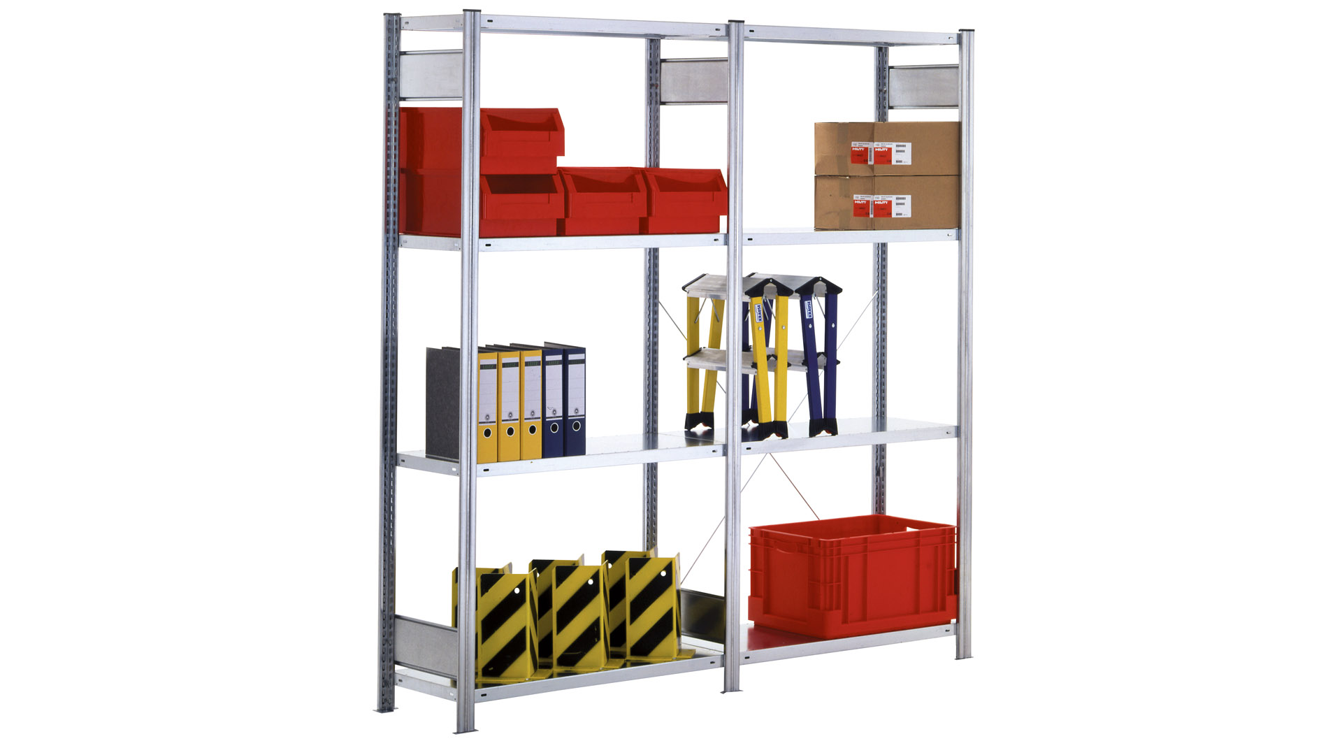 Dieses Schnellbausystem ist auf die Einlagerung von leichten und mittleren Lasten ausgelegt. Seine schnelle und einfache Montage wird durch weitgehend steckbare Regalkomponenten möglich. Es ist ein universell einsetzbares Fachbodenregal für alle Anwendungen in Lager, Büro und Archiv und überzeugt durch vielfältige Funktionalität, modernes Design und einen hohen Qualitätsstandard.