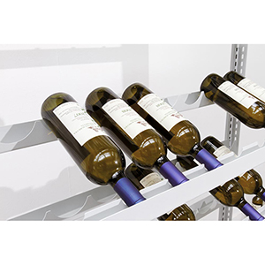· Für die liegende Lagerung von Flaschen · Schneller Zugriff und einfache Bestückung · Sichere und übersichtliche Einlagerung der Flaschen · Vordere Leiste mit Sicherheitsanschlag · Kapazität 9 Flaschen pro Ebene