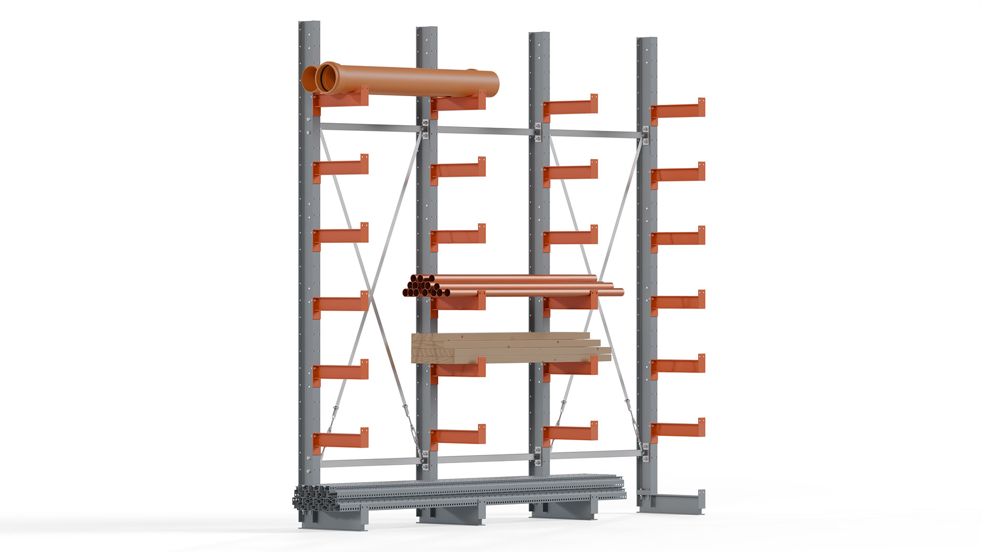 Kragarmregale bieten höchste Flexibilität, um unterschiedlichen Lageranforderungen gerecht zu werden. Auf Anfrage sind Höhen bis 12 Meter und Nutztiefen bis 3 Meter möglich, sowohl für einseitige als auch doppelseitige Ausführungen. Damit steht eine Lösung für nahezu jede Lagerumgebung zur Verfügung.