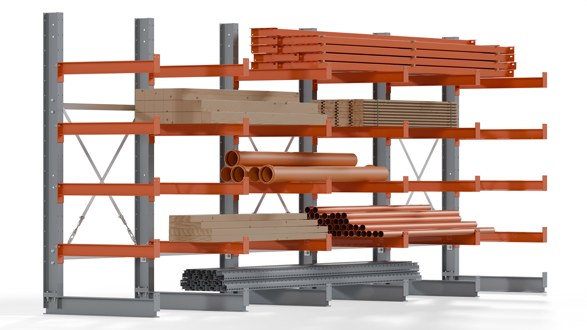 Kragarmregale bieten höchste Flexibilität, um unterschiedlichen Lageranforderungen gerecht zu werden. Auf Anfrage sind Höhen bis 12 Meter und Nutztiefen bis 3 Meter möglich, sowohl für einseitige als auch doppelseitige Ausführungen. Damit steht eine Lösung für nahezu jede Lagerumgebung zur Verfügung.