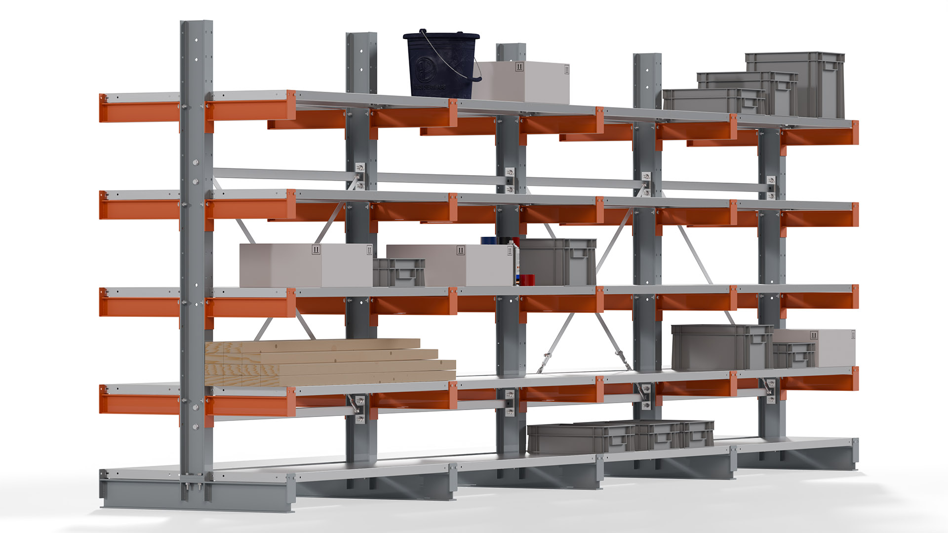 Kragarmregal KARL basic - lackiert - Breite: 512 cm - Höhe: 200 cm - Tiefe: 40 cm - Traglast je Kragarm: 1100 kg - beidseitig