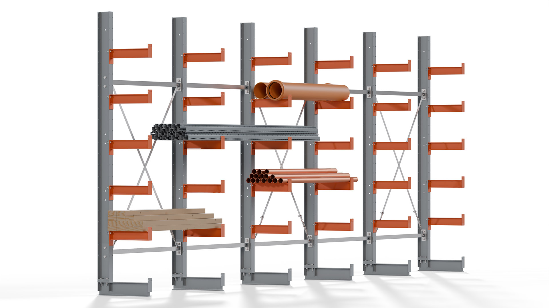 Kragarmregale bieten höchste Flexibilität, um unterschiedlichen Lageranforderungen gerecht zu werden. Auf Anfrage sind Höhen bis 12 Meter und Nutztiefen bis 3 Meter möglich, sowohl für einseitige als auch doppelseitige Ausführungen. Damit steht eine Lösung für nahezu jede Lagerumgebung zur Verfügung.