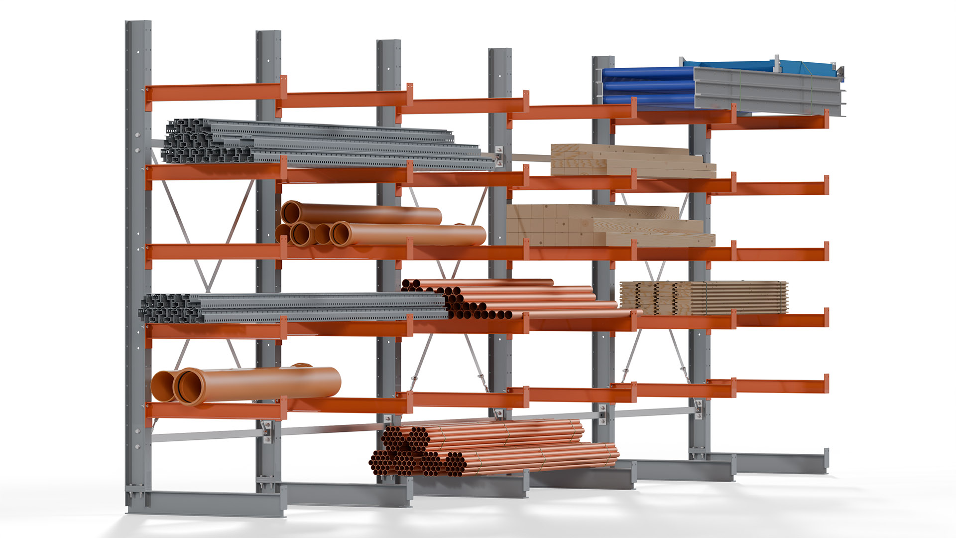 Kragarmregale bieten höchste Flexibilität, um unterschiedlichen Lageranforderungen gerecht zu werden. Auf Anfrage sind Höhen bis 12 Meter und Nutztiefen bis 3 Meter möglich, sowohl für einseitige als auch doppelseitige Ausführungen. Damit steht eine Lösung für nahezu jede Lagerumgebung zur Verfügung.