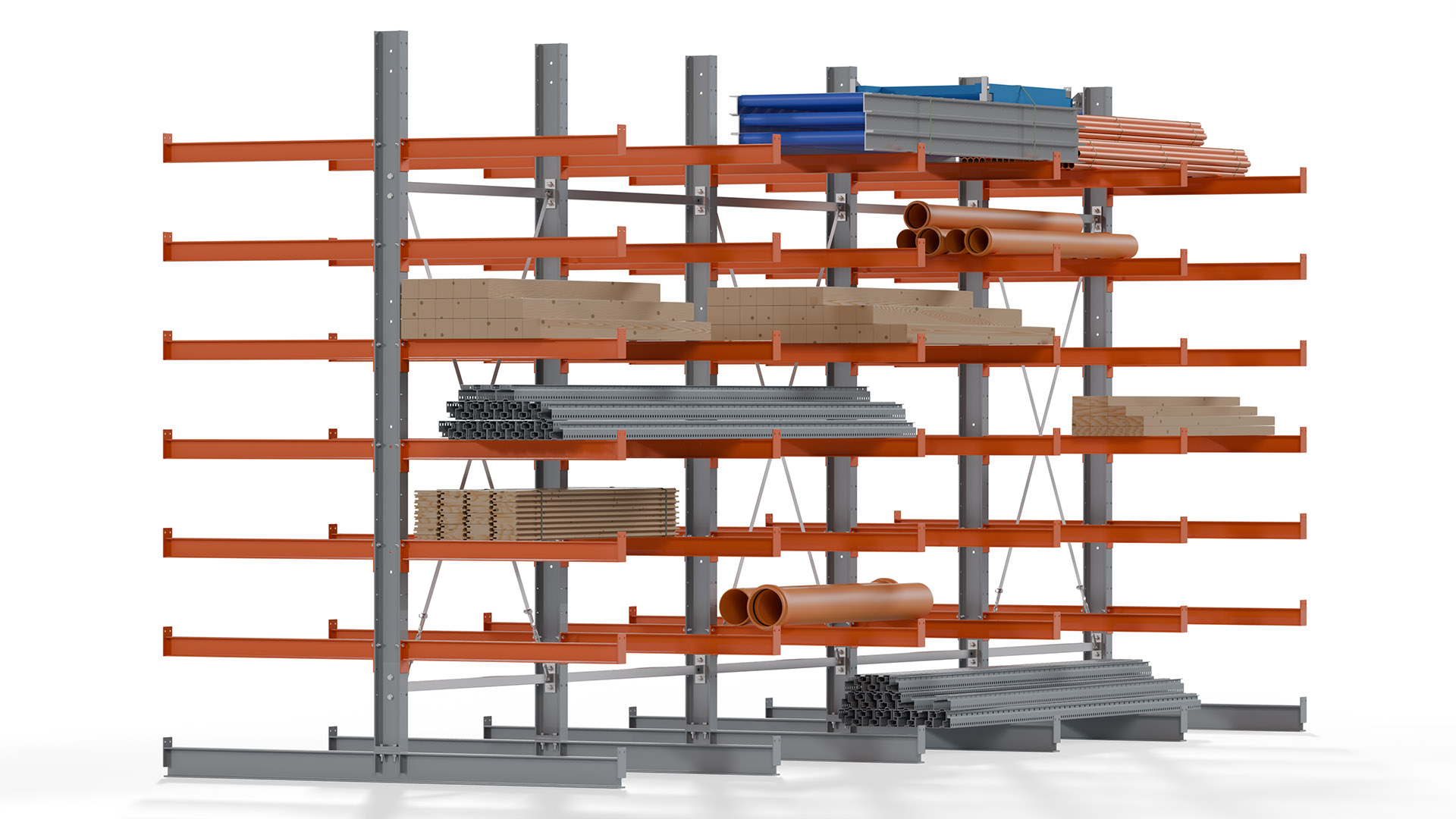 Kragarmregale bieten höchste Flexibilität, um unterschiedlichen Lageranforderungen gerecht zu werden. Auf Anfrage sind Höhen bis 12 Meter und Nutztiefen bis 3 Meter möglich, sowohl für einseitige als auch doppelseitige Ausführungen. Damit steht eine Lösung für nahezu jede Lagerumgebung zur Verfügung.