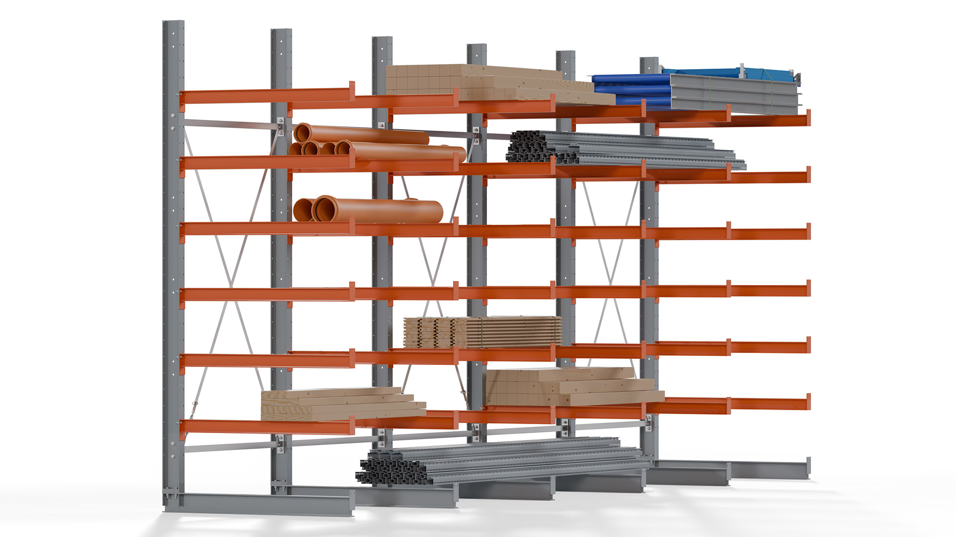 Kragarmregale bieten höchste Flexibilität, um unterschiedlichen Lageranforderungen gerecht zu werden. Auf Anfrage sind Höhen bis 12 Meter und Nutztiefen bis 3 Meter möglich, sowohl für einseitige als auch doppelseitige Ausführungen. Damit steht eine Lösung für nahezu jede Lagerumgebung zur Verfügung.