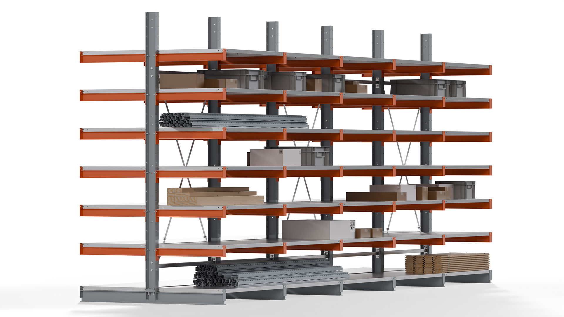 Kragarmregal KARL basic - lackiert - Breite: 640 cm - Höhe: 300 cm - Tiefe: 80 cm - Traglast je Kragarm: 550 kg - beidseitig