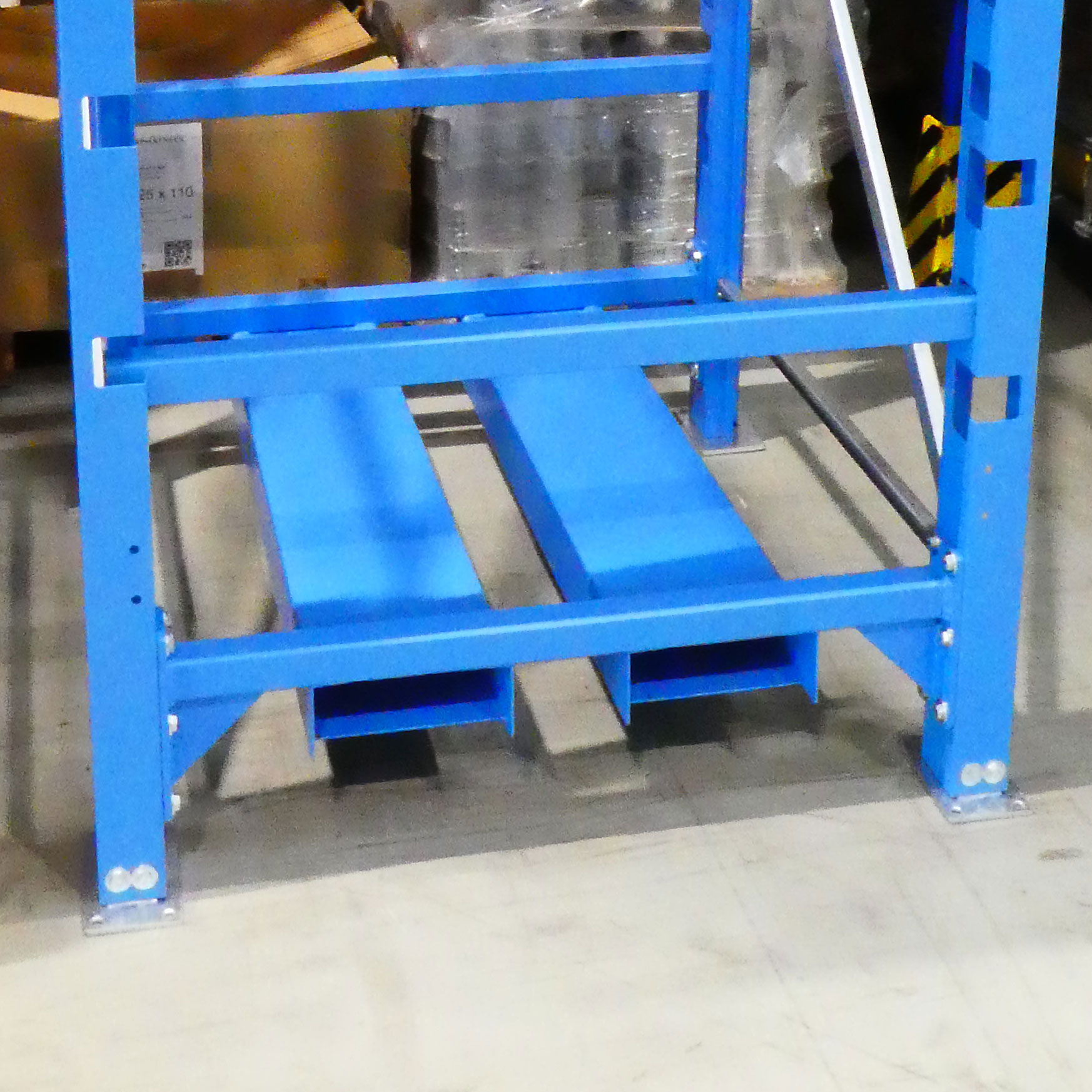 Die mobile Ausführung ist ausgestattet mit Einfahrtaschen zum sicheren Transport mit Stapler oder Deichselstapler. Unsere Palettenregale erhalten Sie gegen Mehrpreis auch in anderen RAL-Farbtönen oder auch Feuerverzinkt.
