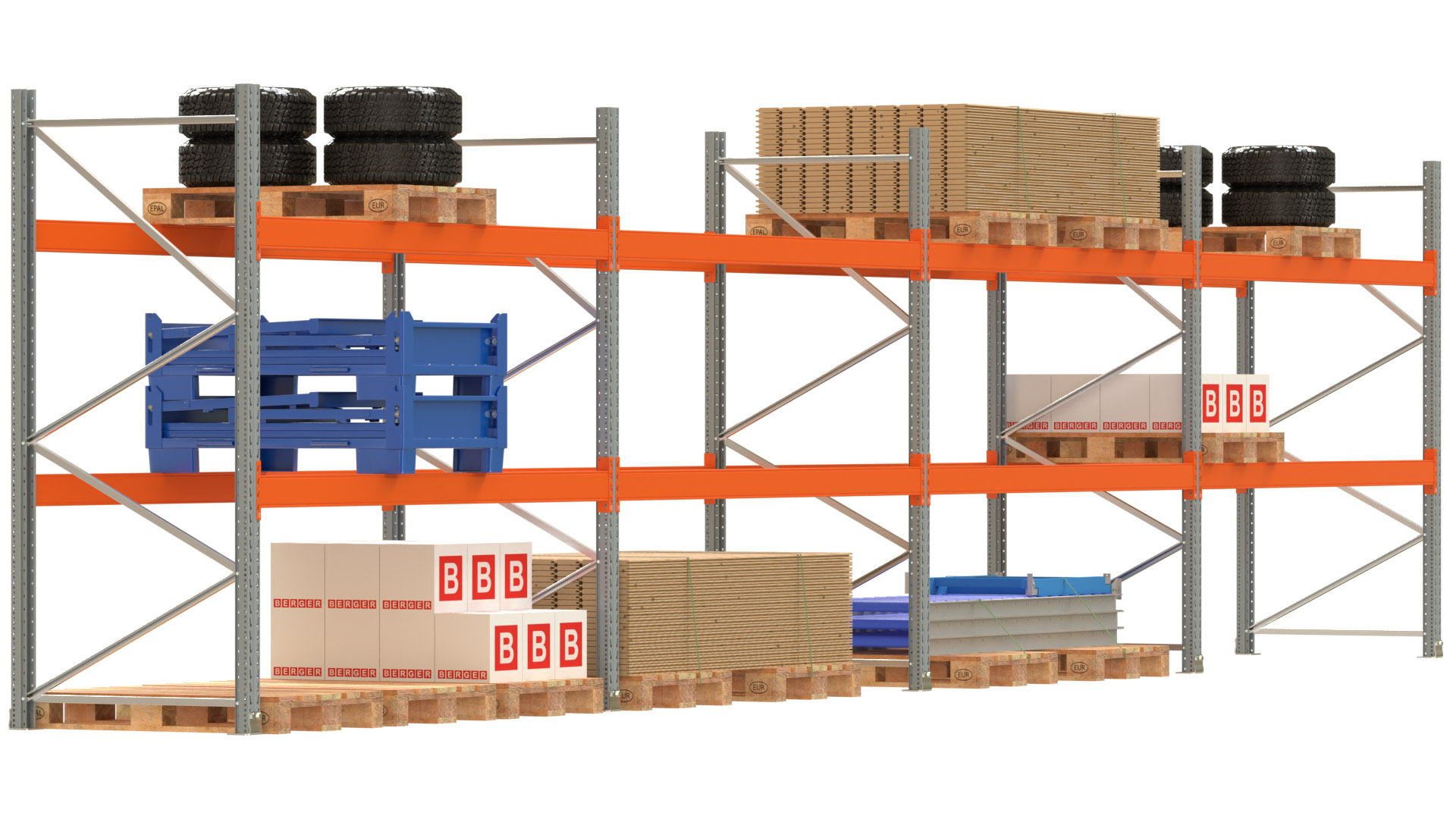 Durch ein optimal aufeinander abgestimmtes Programm an Regalkomponenten wie Stützrahmen, Auflageträger und viele andere Zubehörteile kann das Palettenregal individuell an unterschiedliches Lagergut und räumliche Gegebenheiten angepasst und jederzeit auch erweitert werden.