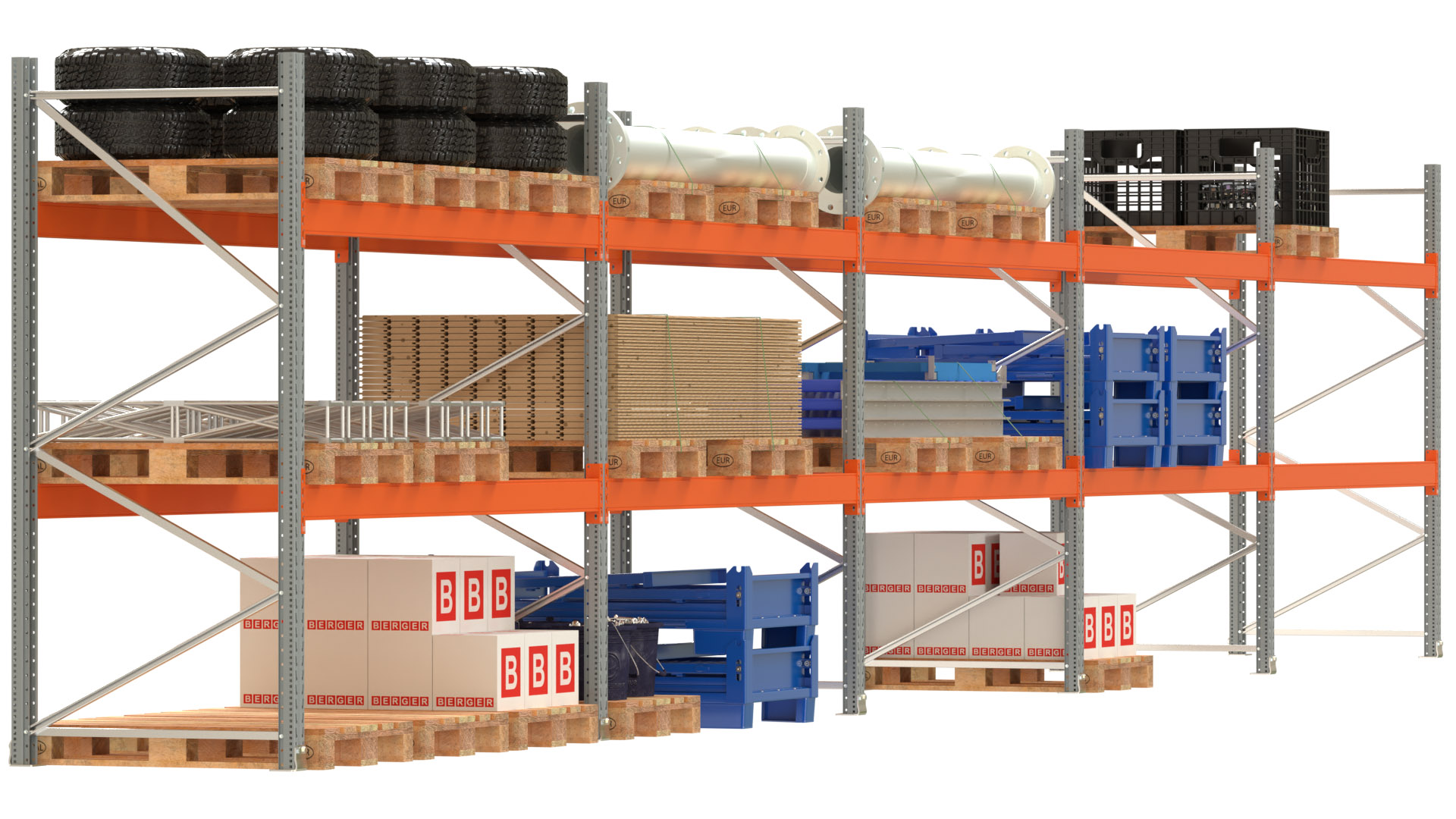 Durch ein optimal aufeinander abgestimmtes Programm an Regalkomponenten wie Stützrahmen, Auflageträger und viele andere Zubehörteile kann das Palettenregal individuell an unterschiedliches Lagergut und räumliche Gegebenheiten angepasst und jederzeit auch erweitert werden.