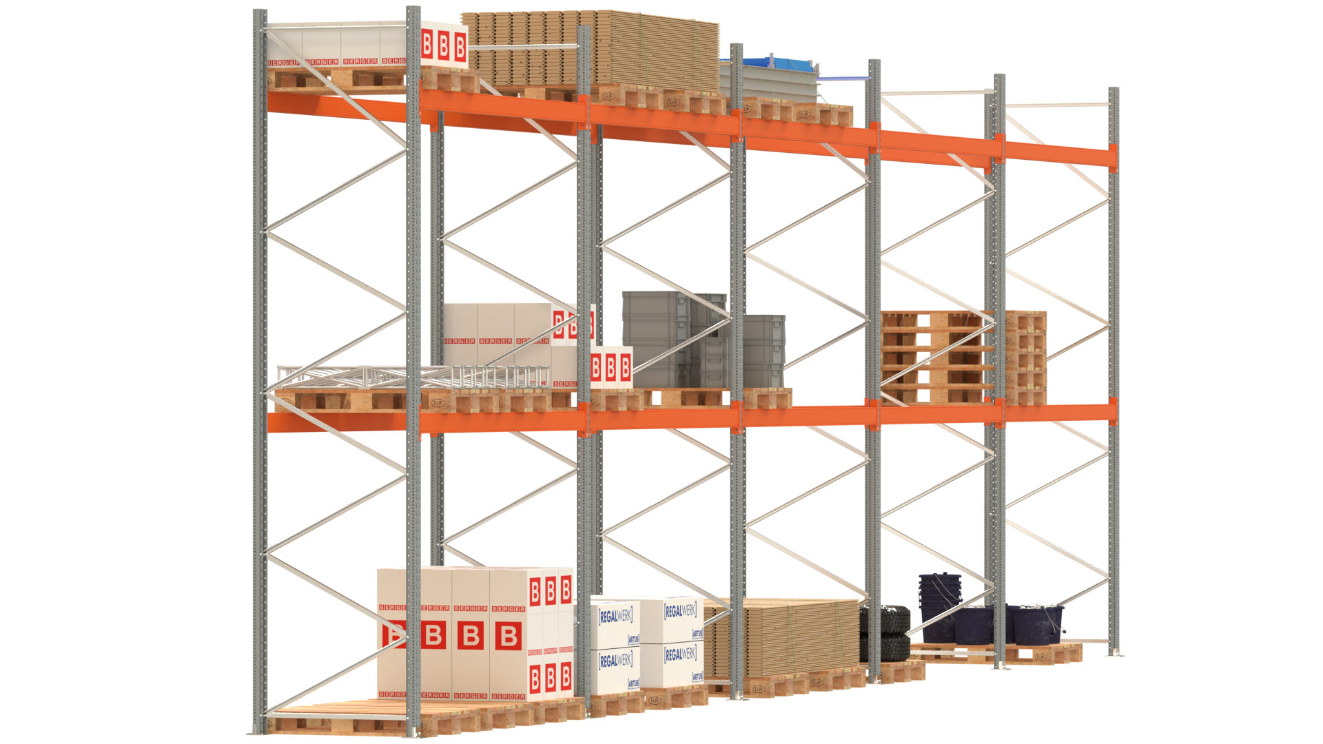 Palettenregal ARTUS - Breite 1401 cm - Höhe 450 cm - Tiefe 110 cm - Fachlast 3000 kg - 45 Palettenstellplätze