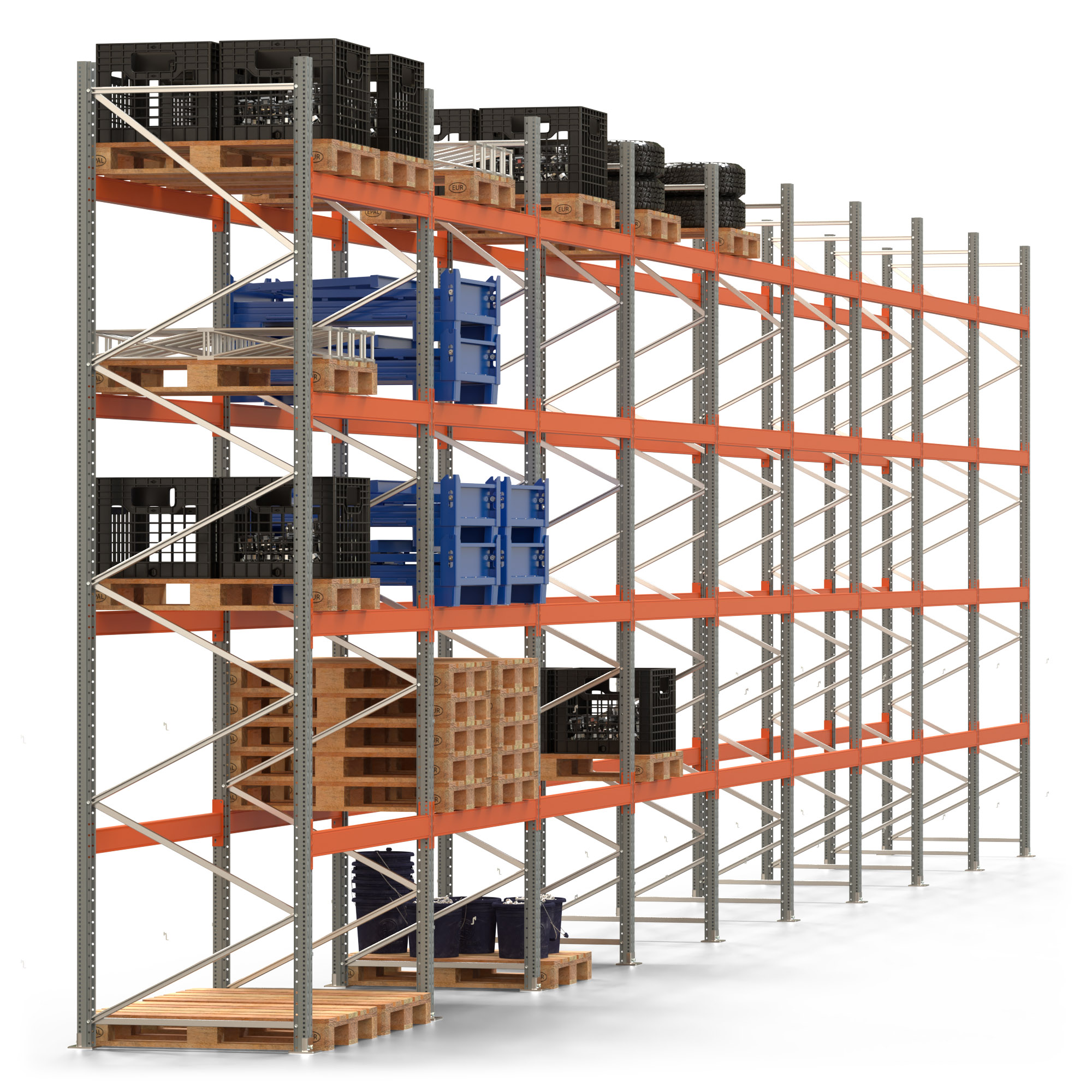 Palettenregal ARTUS - Breite 1795 cm - Höhe 450 cm - Tiefe 110 cm - 4 Träger-Ebenen - Fachlast 2000 kg - 90 Palettenstellplätze