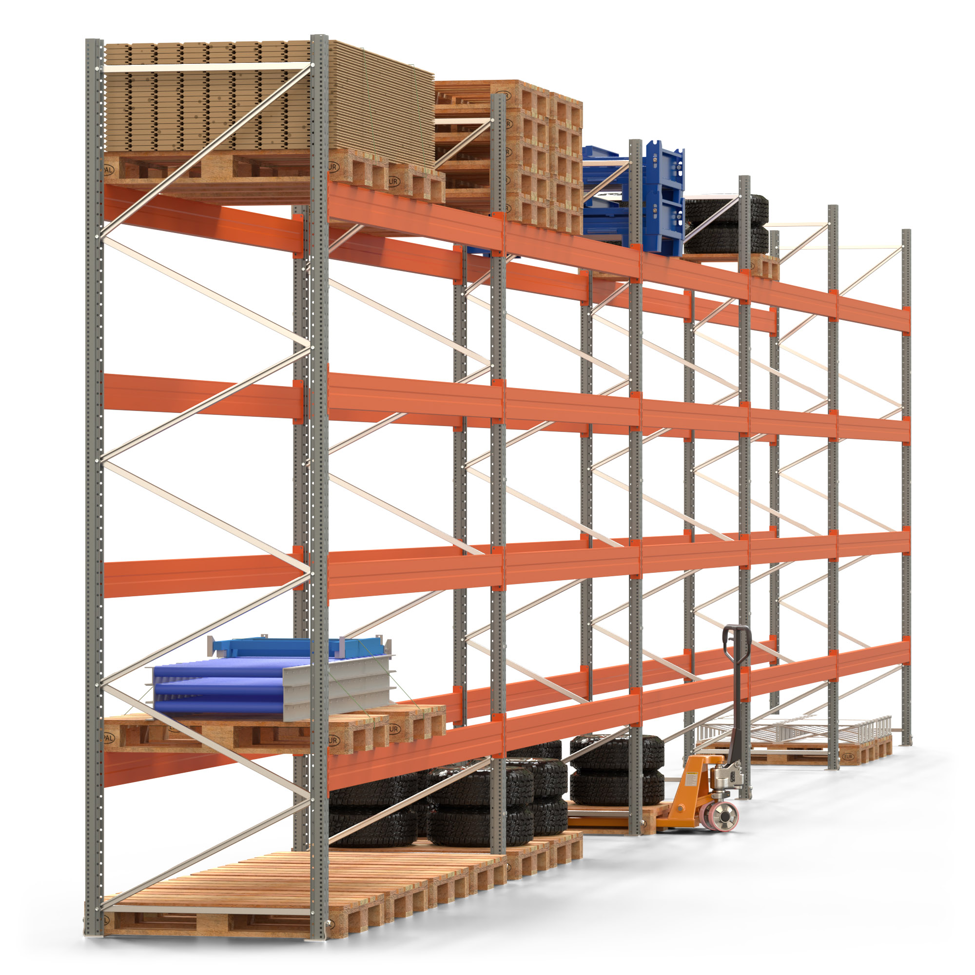 Palettenregal ARTUS - Breite 1851 cm - Höhe 400 cm - Tiefe 110 cm - 4 Träger-Ebenen - Fachlast 2400 kg - 100 Palettenstellplätze