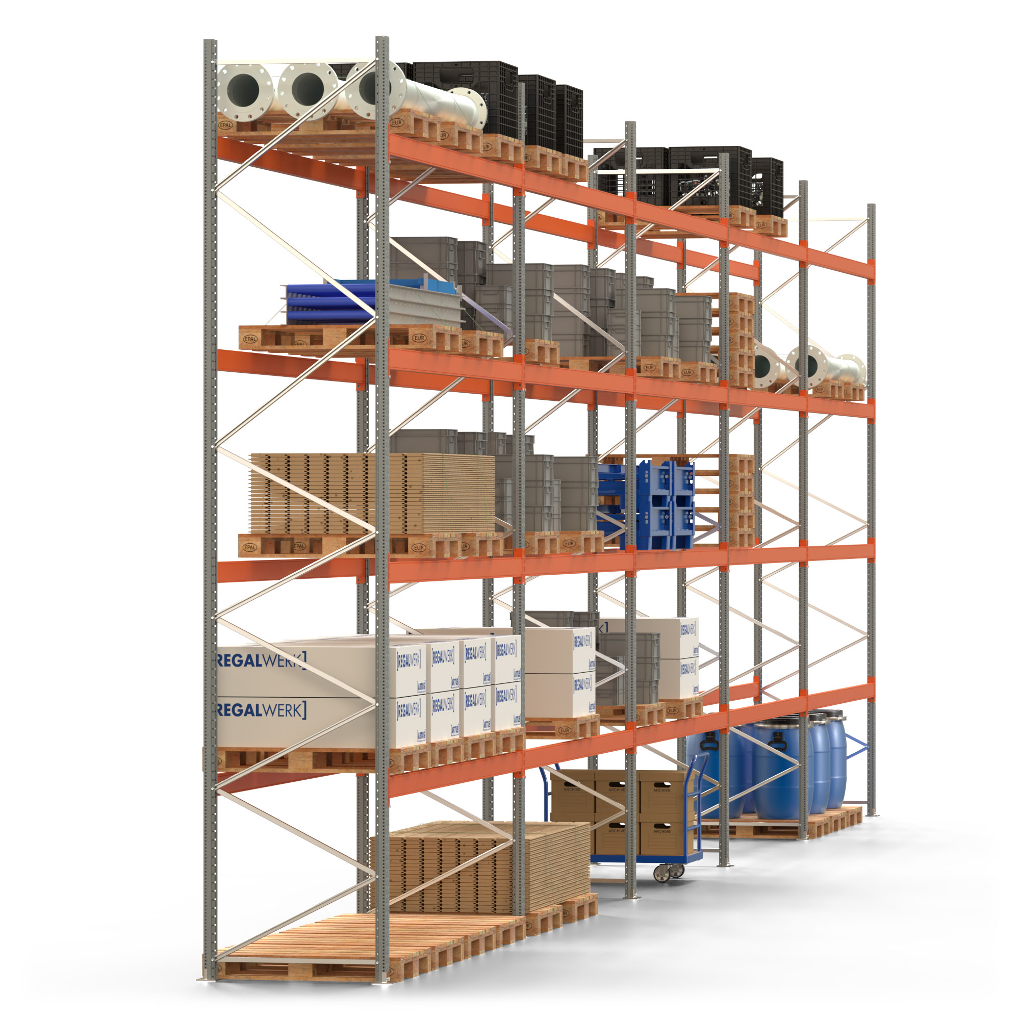 Palettenregal ARTUS - Breite 1851 cm - Höhe 550 cm - Tiefe 110 cm - 4 Träger-Ebenen - Fachlast 2300 kg - 100 Palettenstellplätze