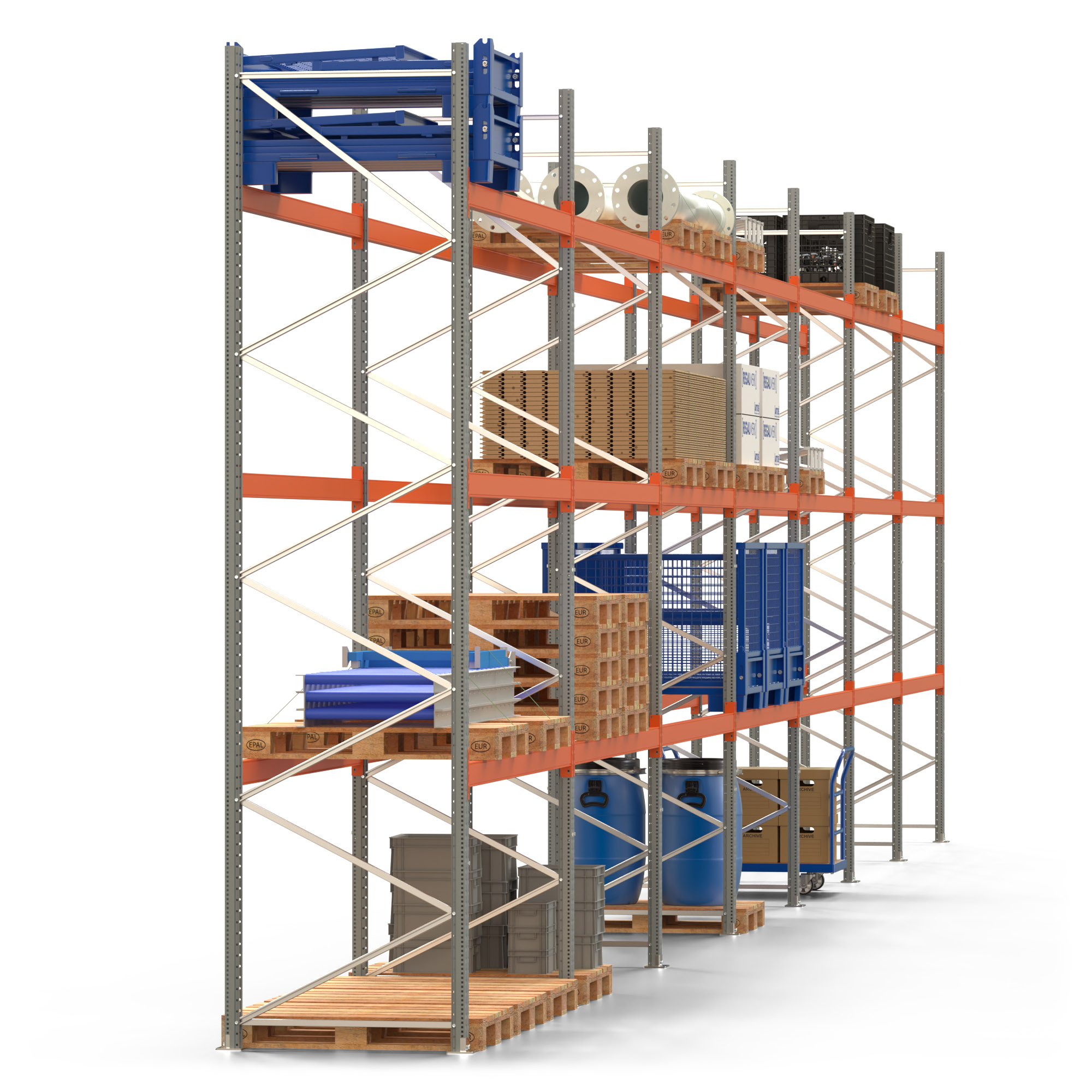 Palettenregal ARTUS - Breite 1958 cm - Höhe 450 cm - Tiefe 110 cm - 3 Träger-Ebenen - Fachlast 2000 kg - 84 Palettenstellplätze