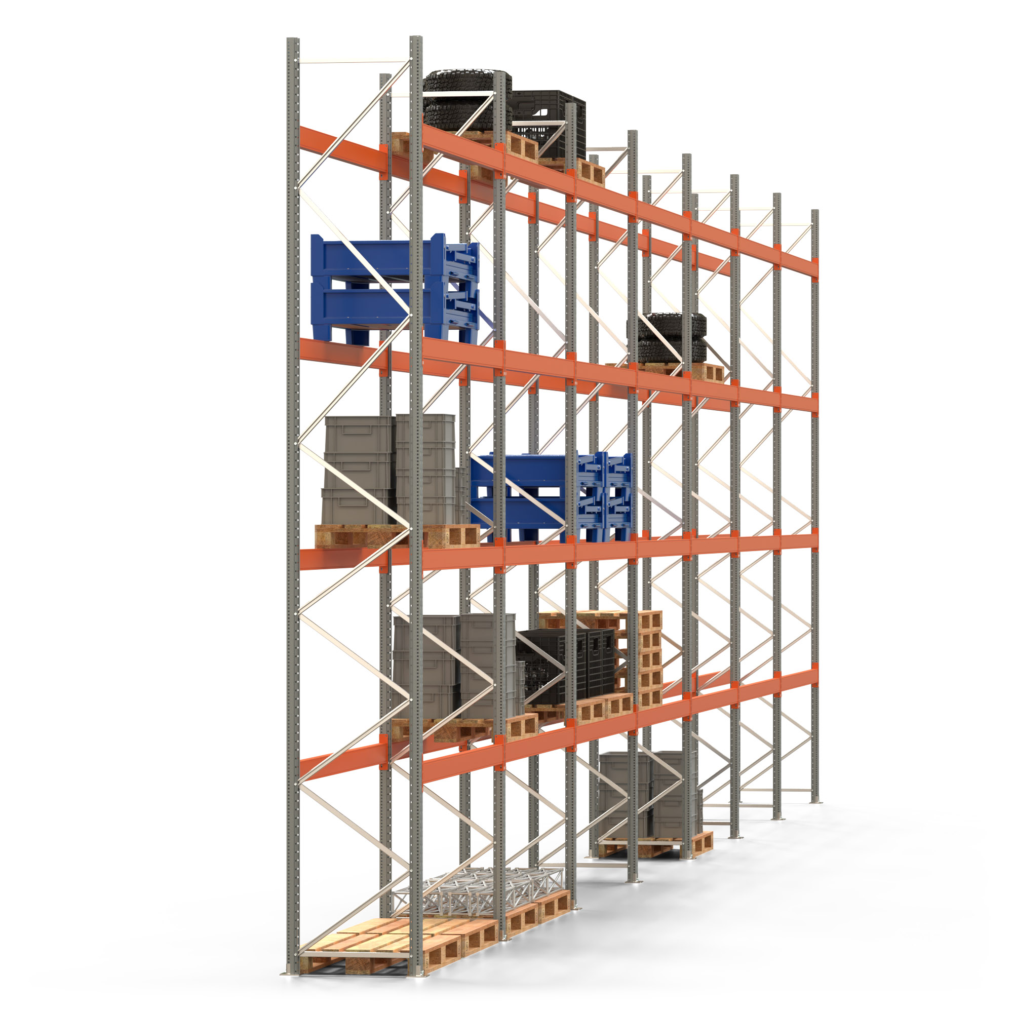 Palettenregal ARTUS - Breite 1958 cm - Höhe 550 cm - Tiefe 80 cm - 4 Träger-Ebenen - Fachlast 2250 kg - 70 Palettenstellplätze