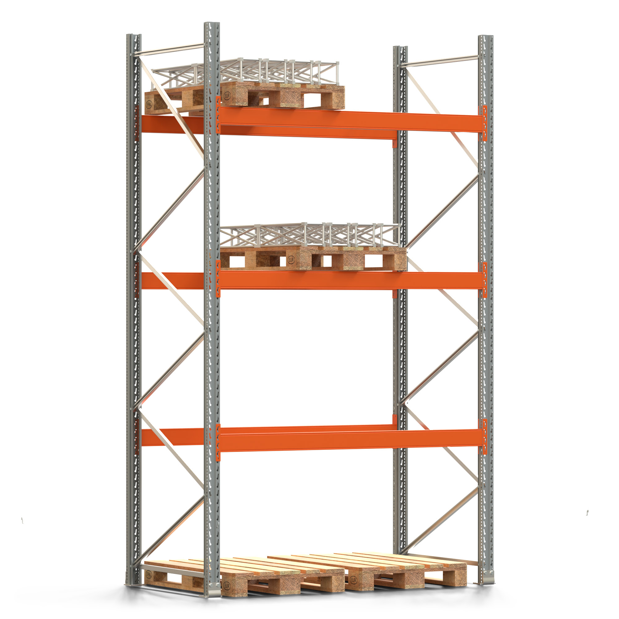 Palettenregal ARTUS - Breite 207 cm - Höhe 350 cm - Tiefe 110 cm - 3 Träger-Ebenen - Fachlast 2000 kg - 8 Palettenstellplätze