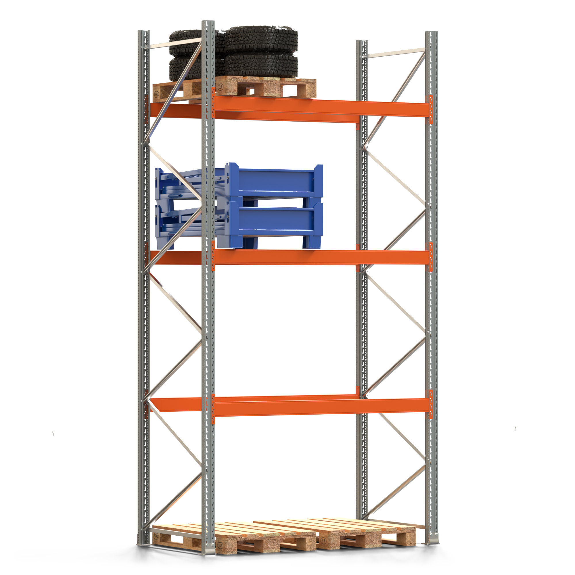 Palettenregal ARTUS - Breite 207 cm - Höhe 400 cm - Tiefe 110 cm - Fachlast 2000 kg - 8 Palettenstellplätze
