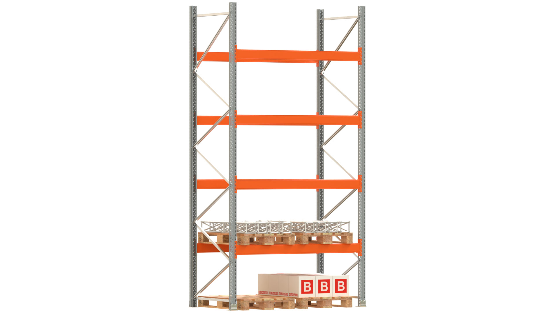 Palettenregal ARTUS - Breite 207 cm - Höhe 400 cm - Tiefe 110 cm - 4 Träger-Ebenen - Fachlast 2600 kg - 10 Palettenstellplätze