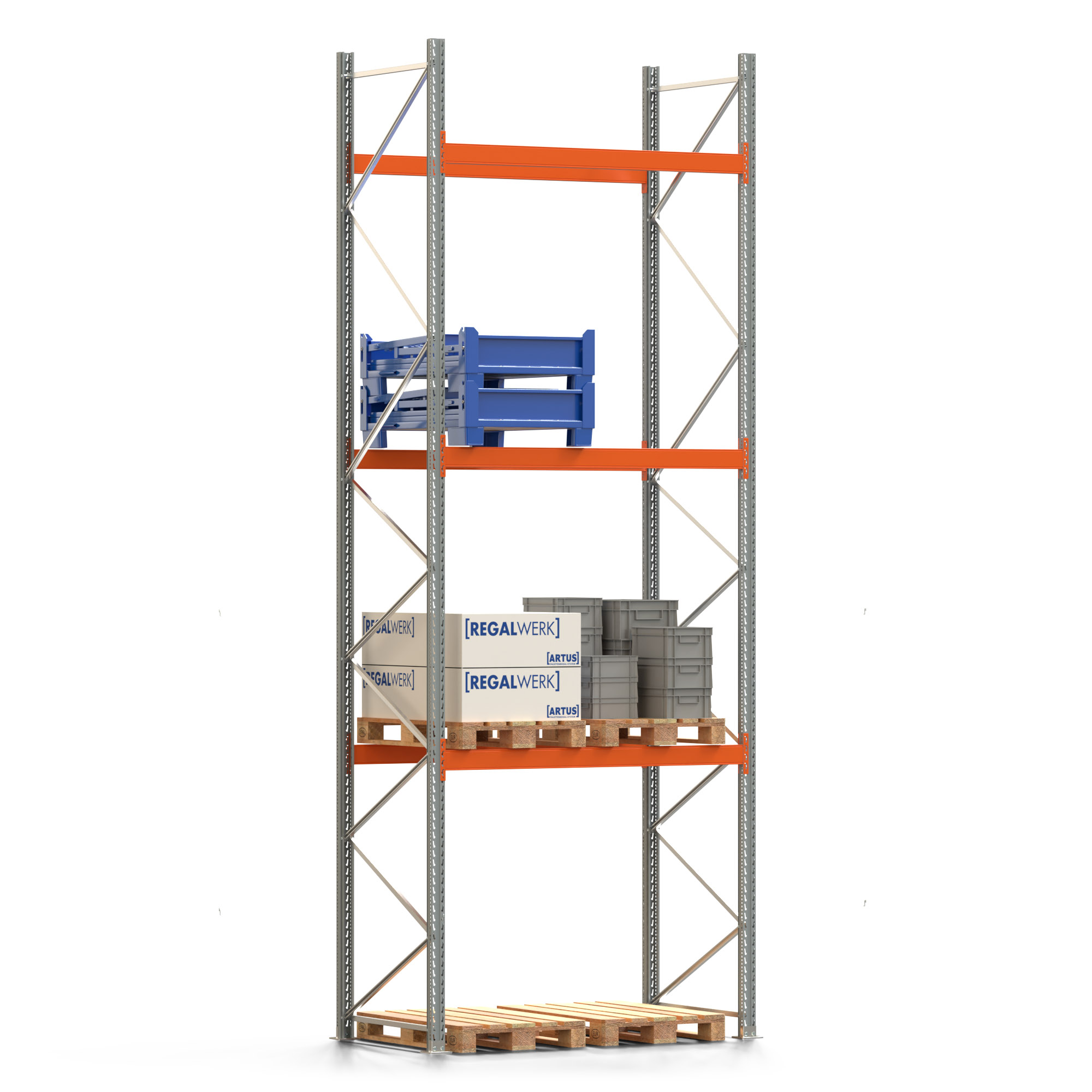 Palettenregal ARTUS - Breite 207 cm - Höhe 550 cm - Tiefe 110 cm - 3 Träger-Ebenen - Fachlast 2000 kg - 8 Palettenstellplätze