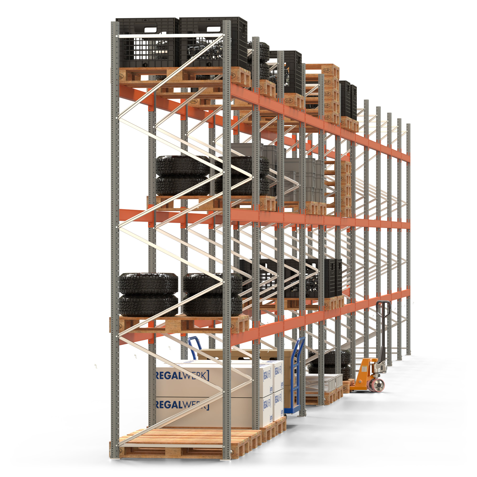 Palettenregal ARTUS - Breite 2192 cm - Höhe 400 cm - Tiefe 110 cm - Fachlast 2000 kg - 88 Palettenstellplätze