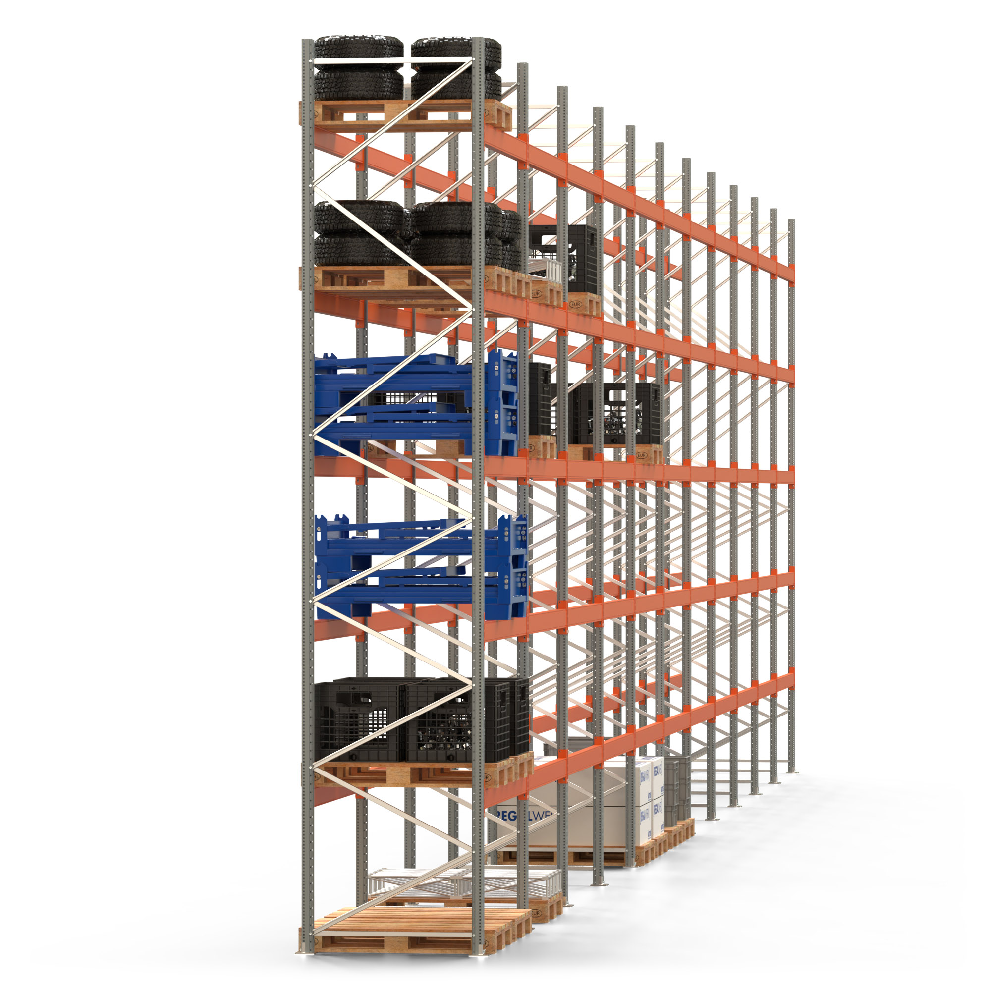 Palettenregal ARTUS - Breite 2192 cm - Höhe 550 cm - Tiefe 110 cm - Fachlast 2000 kg - 66 Palettenstellplätze