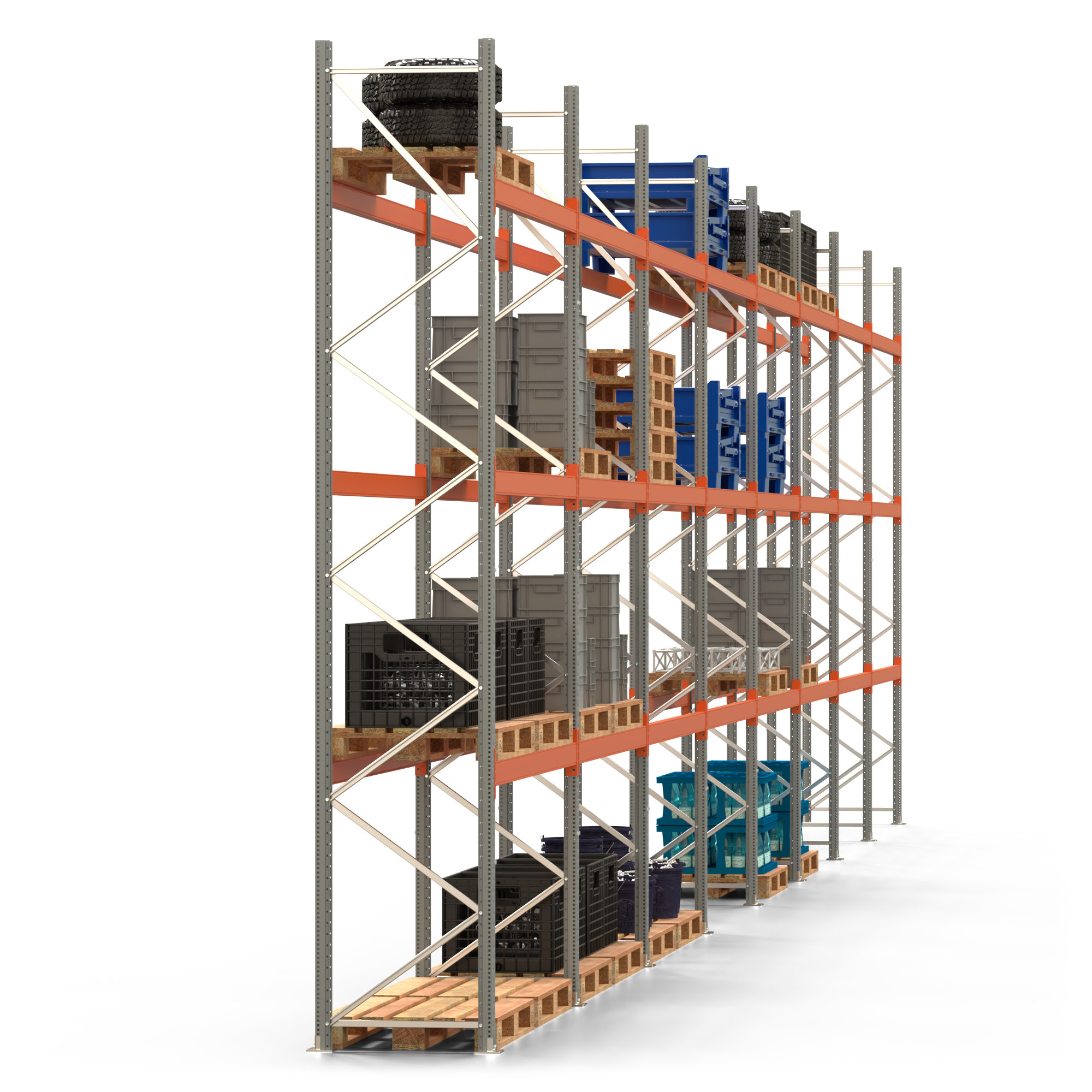 Palettenregal ARTUS - Breite 2236,5 cm - Höhe 450 cm - Tiefe 80 cm - 3 Träger-Ebenen - Fachlast 2000 kg - 64 Palettenstellplätze