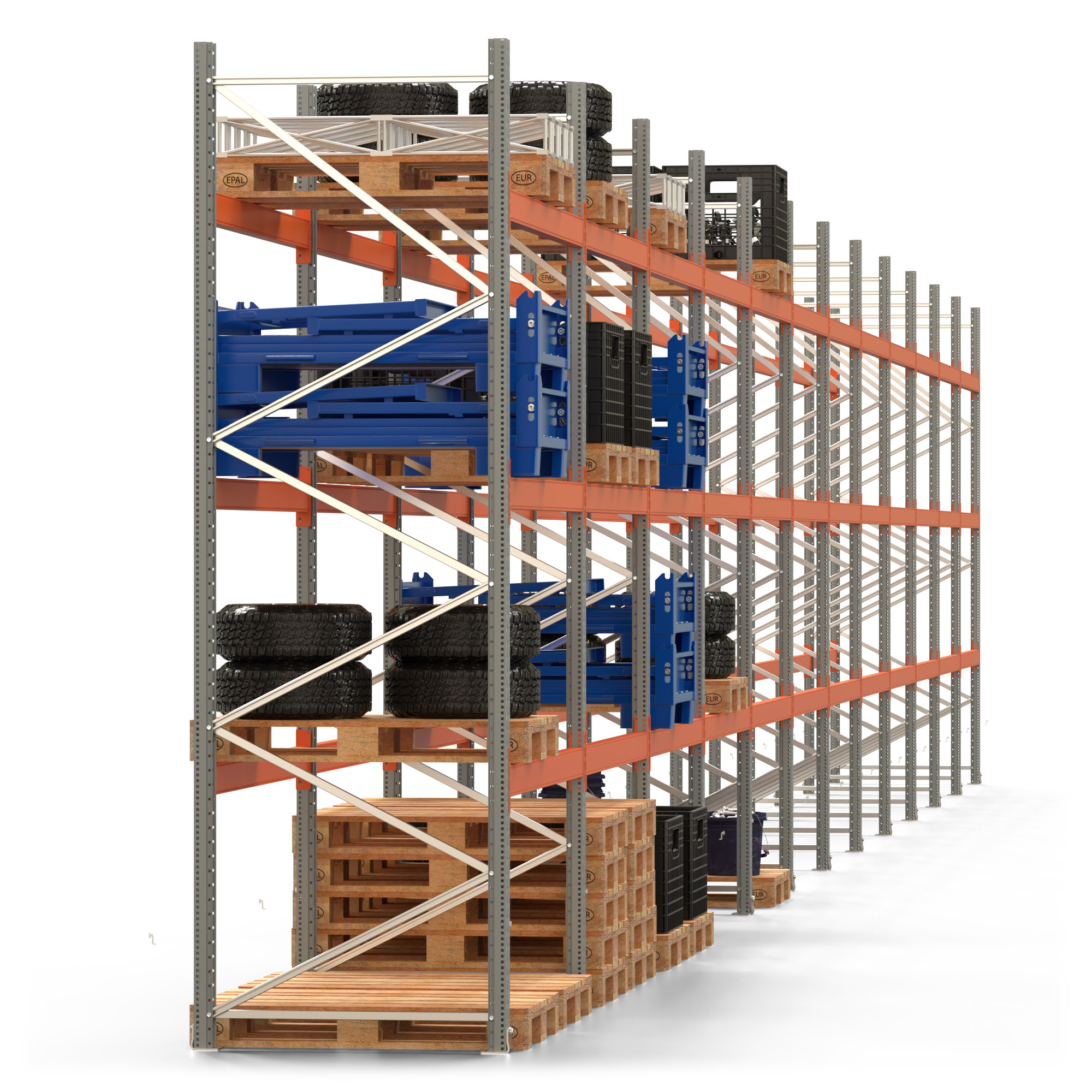 Palettenregal ARTUS - Breite 2390,5 cm - Höhe 350 cm - Tiefe 110 cm - Fachlast 2000 kg - 96 Palettenstellplätze