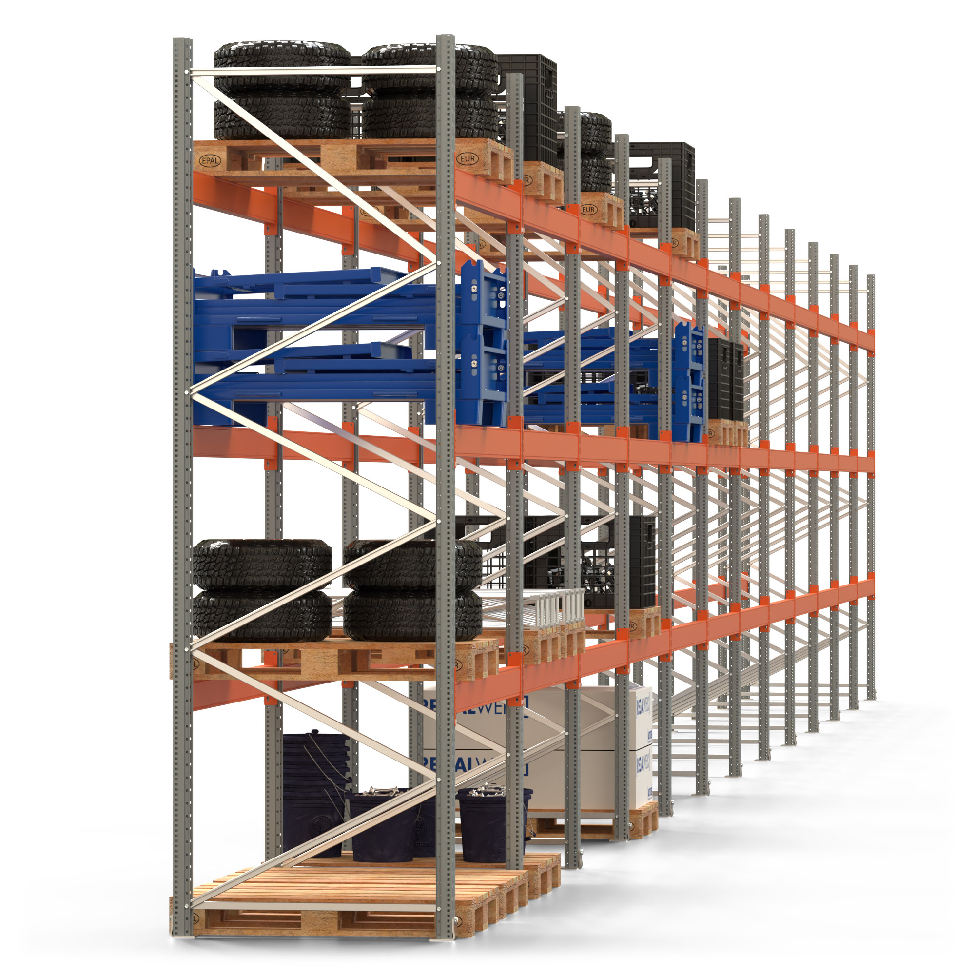 Palettenregal ARTUS - Breite 2390,5 cm - Höhe 350 cm - Tiefe 110 cm - Fachlast 3000 kg - 96 Palettenstellplätze