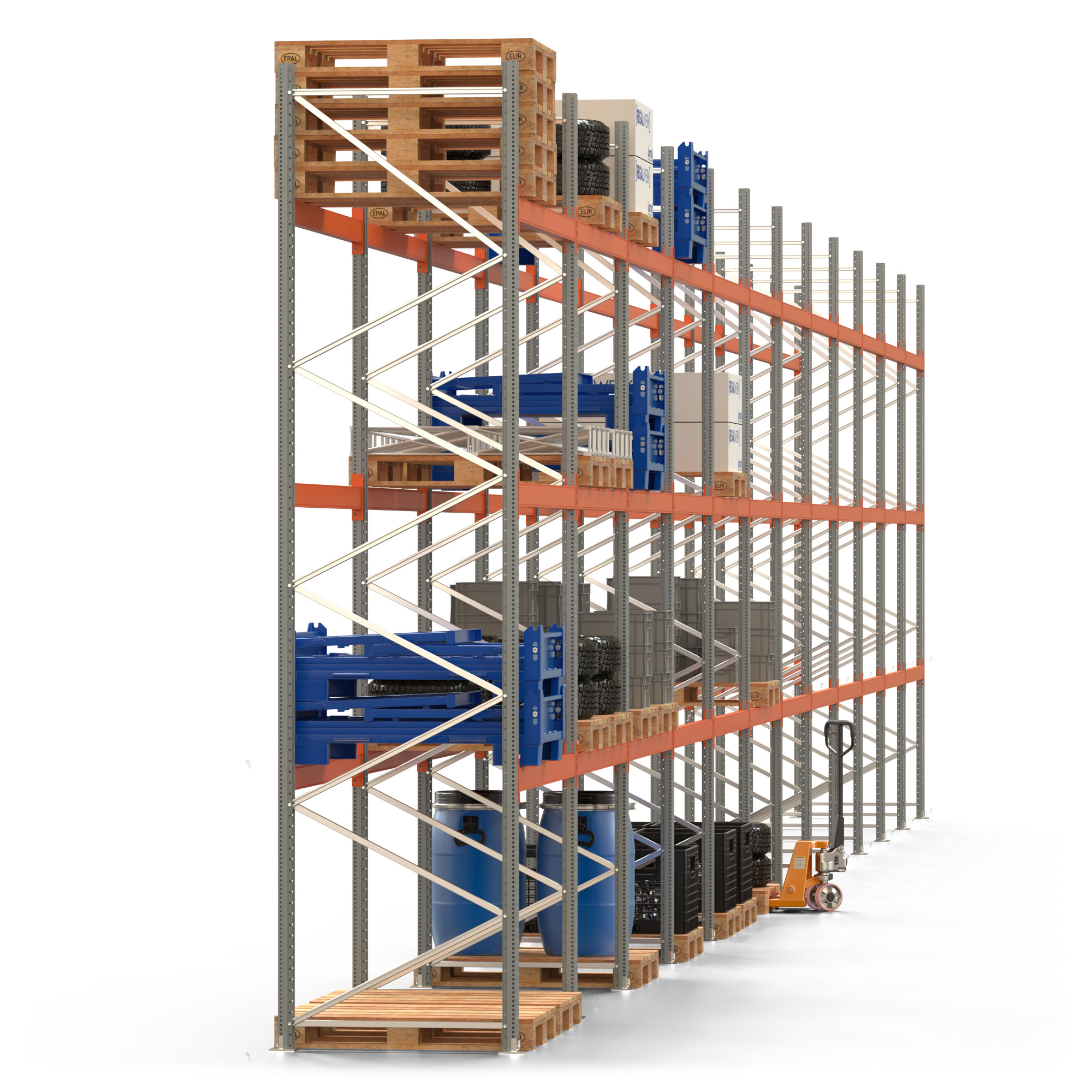Palettenregal ARTUS - Breite 2390,5 cm - Höhe 450 cm - Tiefe 110 cm - Fachlast 2000 kg - 96 Palettenstellplätze