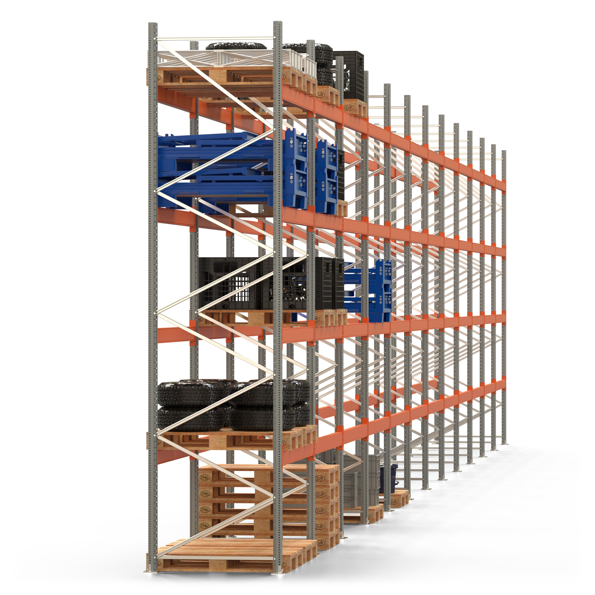 Palettenregal ARTUS - Breite 2390,5 cm - Höhe 450 cm - Tiefe 110 cm - Fachlast 3000 kg - 120 Palettenstellplätze