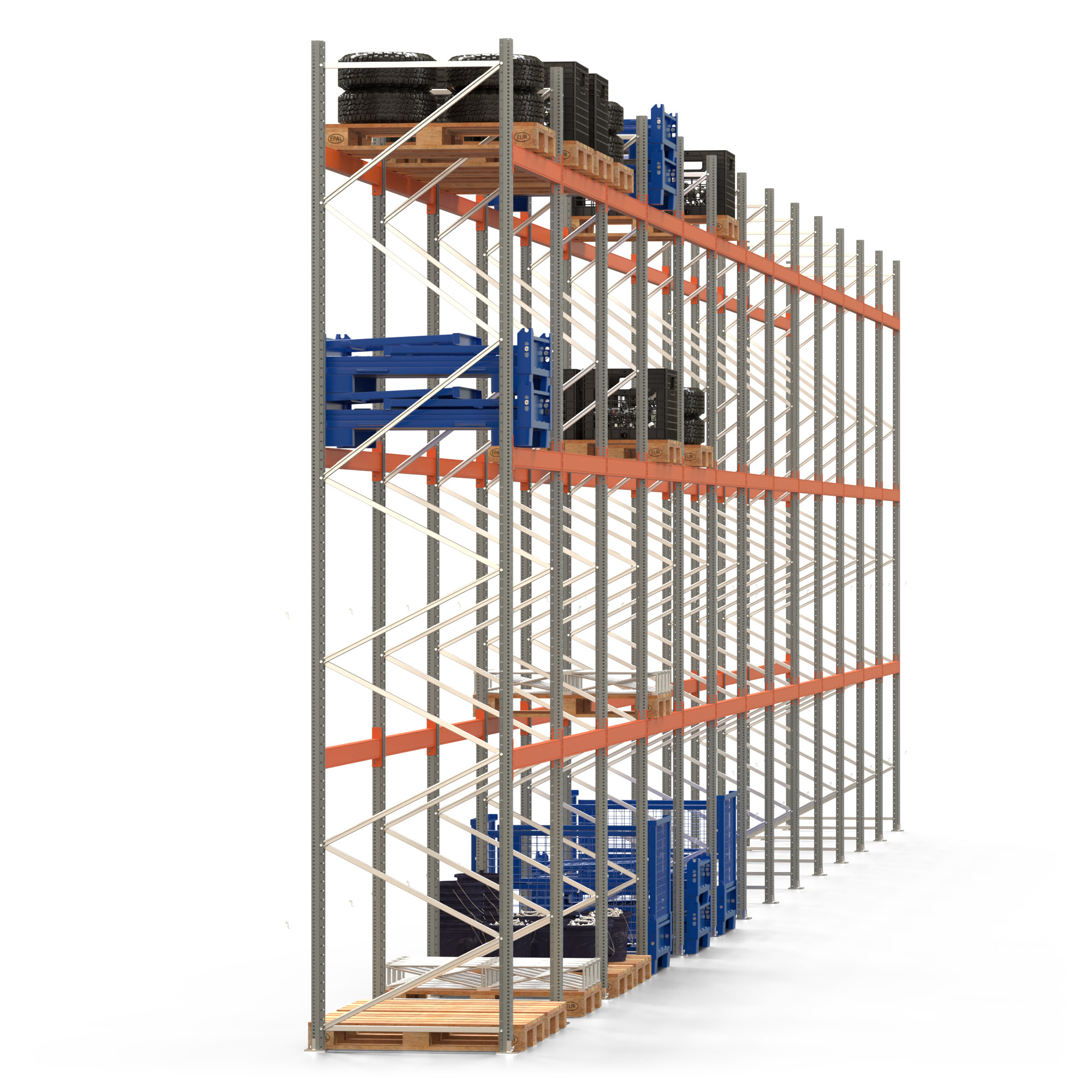 Palettenregal ARTUS - Breite 2589 cm - Höhe 550 cm - Tiefe 110 cm - Fachlast 2000 kg - 104 Palettenstellplätze
