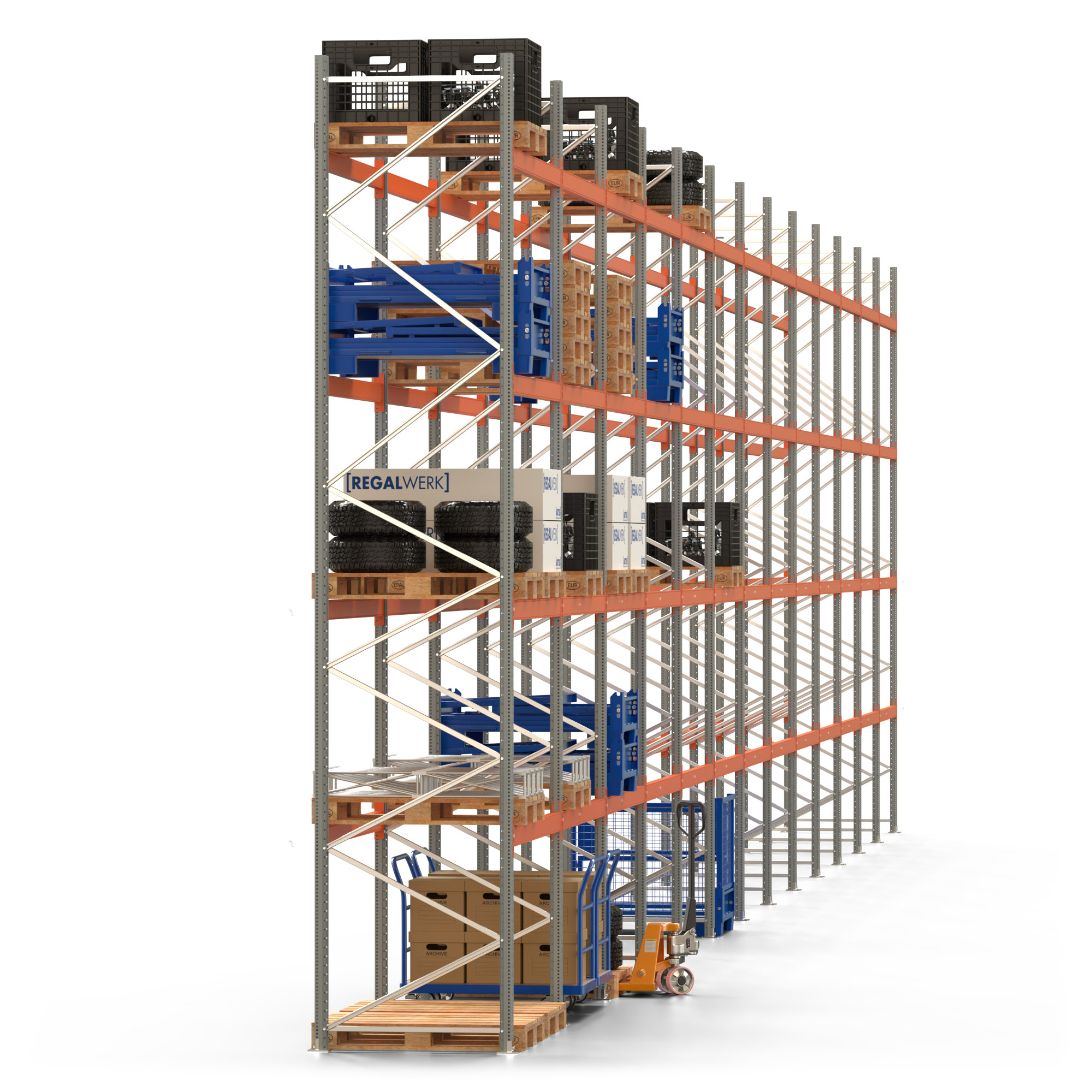 Palettenregal ARTUS - Breite 2589 cm - Höhe 550 cm - Tiefe 110 cm - Fachlast 2000 kg - 130 Palettenstellplätze