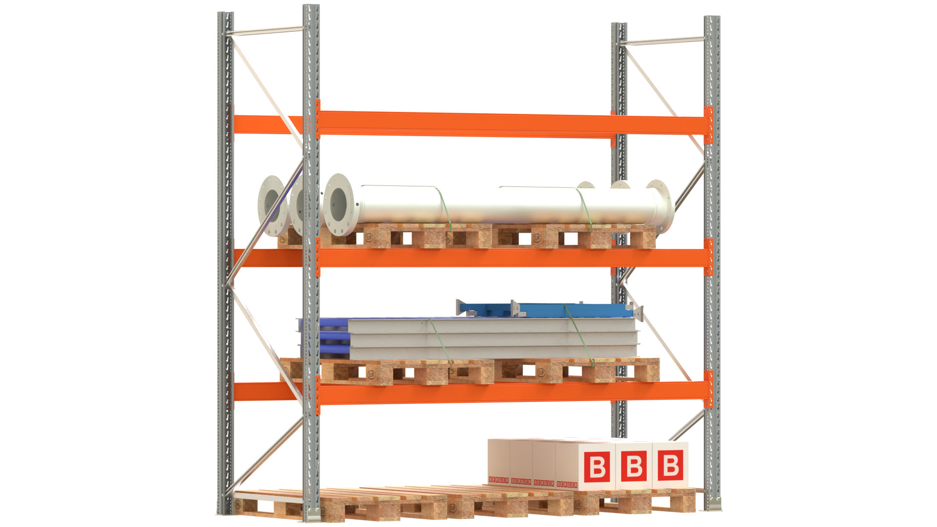 Palettenregal ARTUS - Breite 287 cm - Höhe 300 cm - Tiefe 110 cm - 3 Träger-Ebenen - Fachlast 2000 kg - 12 Palettenstellplätze