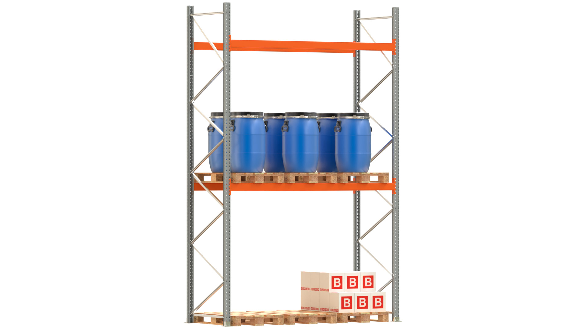 Palettenregal ARTUS - Breite 287 cm - Höhe 450 cm - Tiefe 110 cm - 2 Träger-Ebenen - Fachlast 2000 kg - 9 Palettenstellplätze
