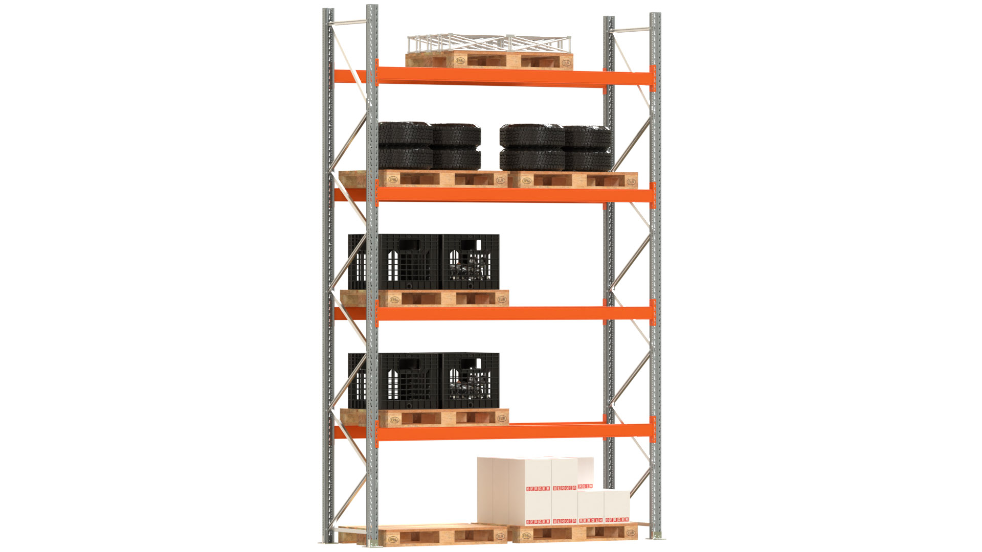 Palettenregal ARTUS - Breite 287 cm - Höhe 450 cm - Tiefe 80 cm - 4 Träger-Ebenen - Fachlast 2000 kg - 10 Palettenstellplätze
