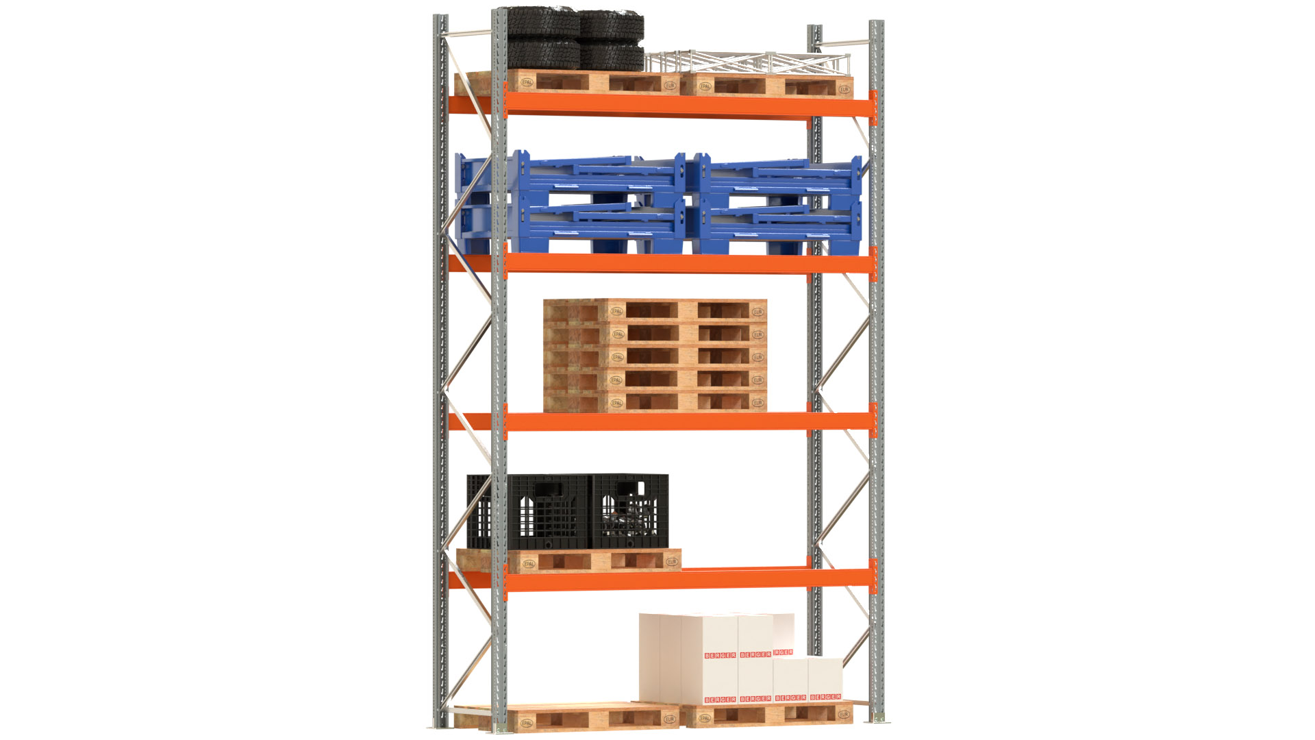 Palettenregal ARTUS - Breite 287 cm - Höhe 450 cm - Tiefe 80 cm - 4 Träger-Ebenen - Fachlast 2320 kg - 10 Palettenstellplätze