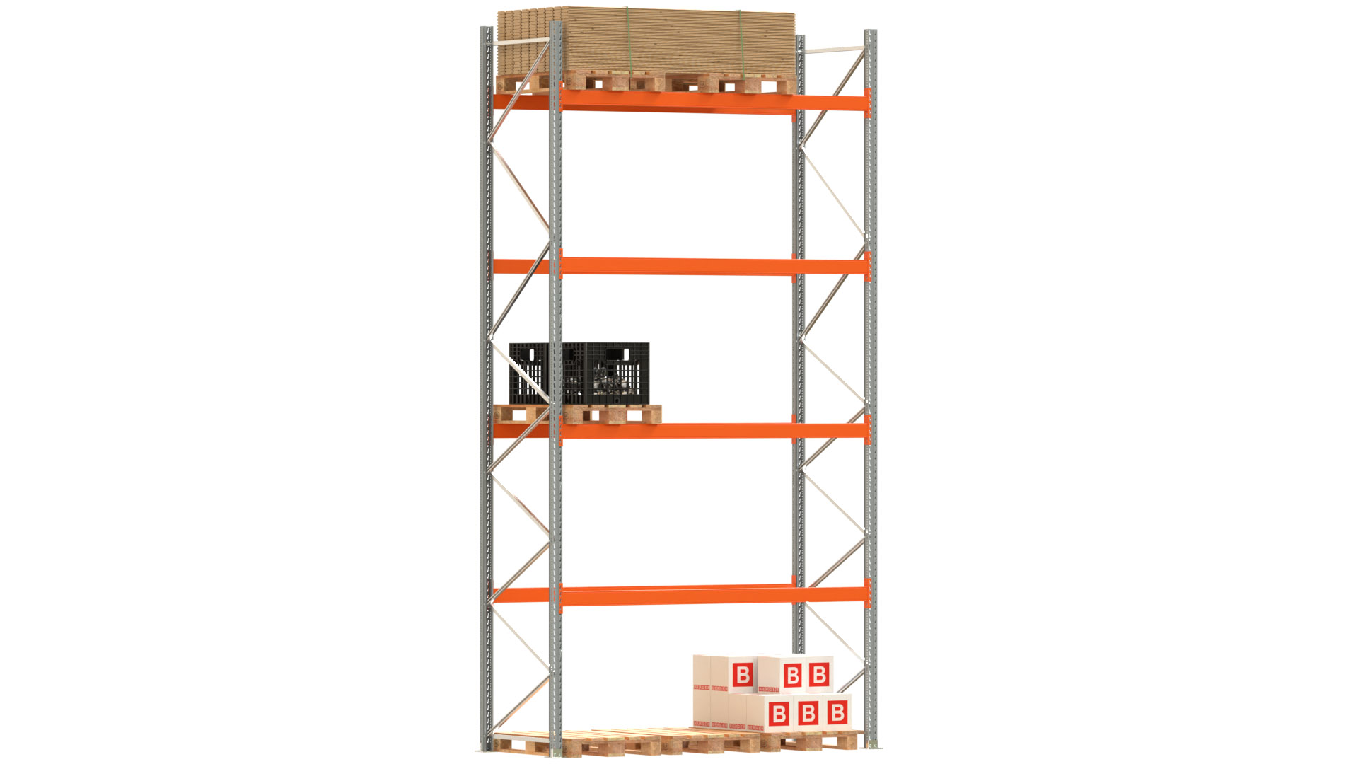 Palettenregal ARTUS - Breite 287 cm - Höhe 550 cm - Tiefe 110 cm - 4 Träger-Ebenen - Fachlast 2000 kg - 15 Palettenstellplätze