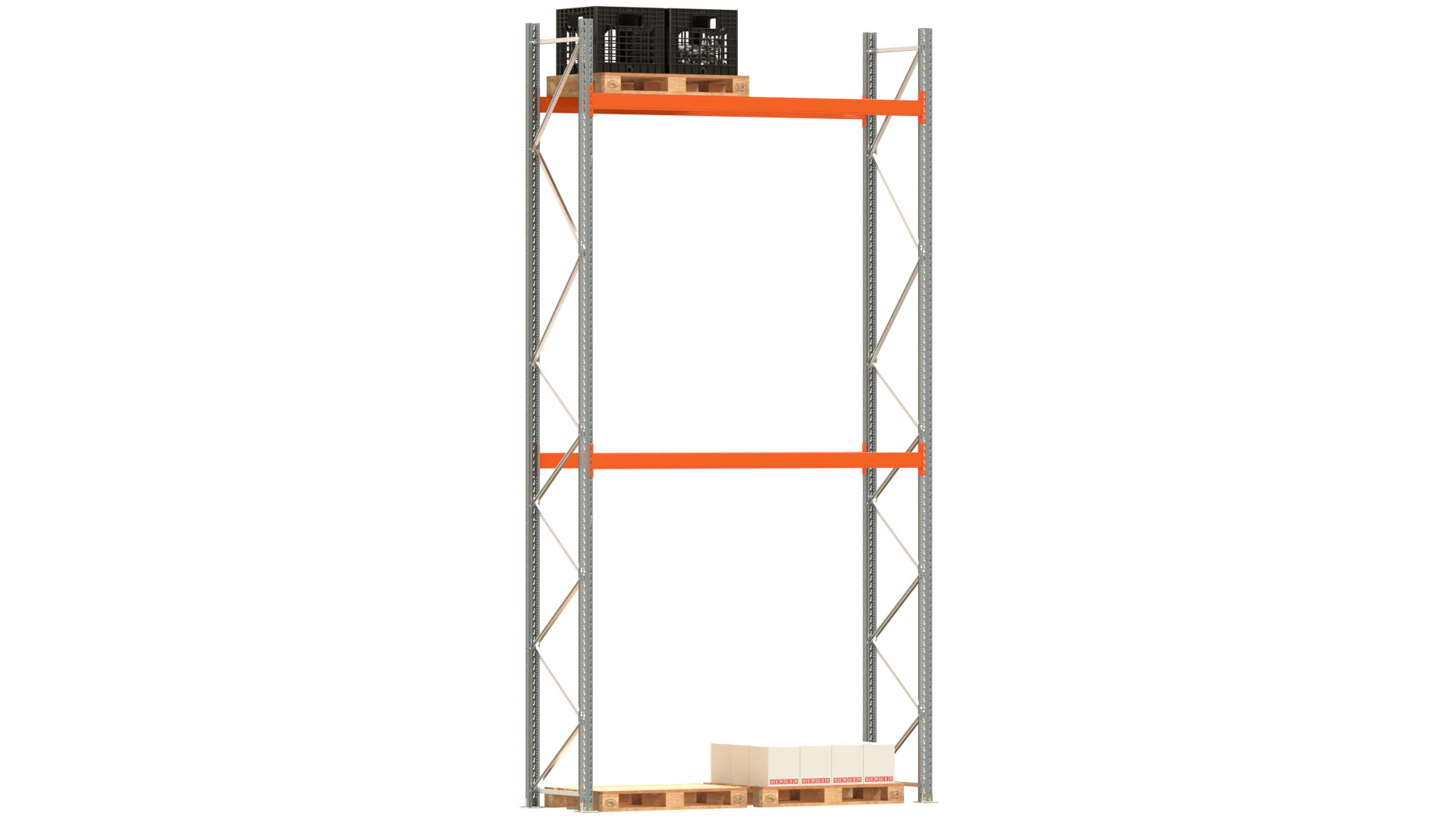 Palettenregal ARTUS - Breite 287 cm - Höhe 550 cm - Tiefe 80 cm - 2 Träger-Ebenen - Fachlast 2000 kg - 6 Palettenstellplätze