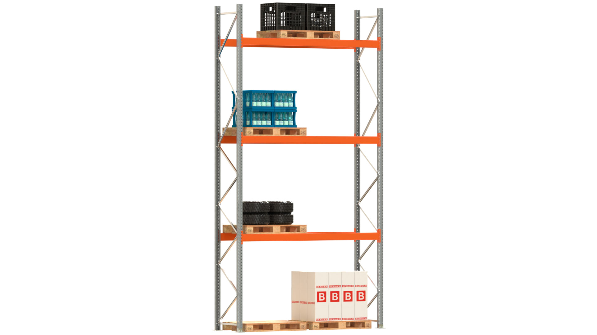 Palettenregal ARTUS - Breite 287 cm - Höhe 550 cm - Tiefe 80 cm - 3 Träger-Ebenen - Fachlast 2770 kg - 8 Palettenstellplätze