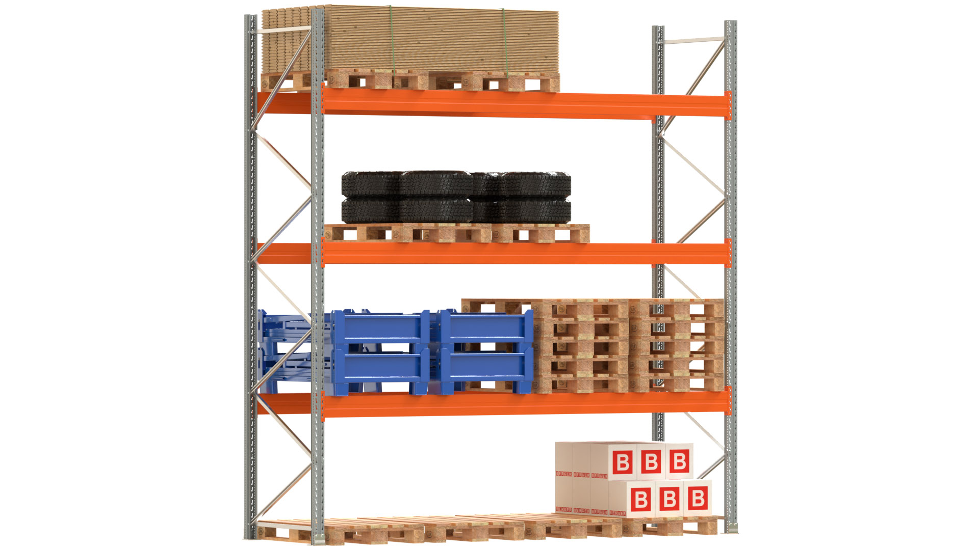 Palettenregal ARTUS - Breite 377 cm - Höhe 400 cm - Tiefe 110 cm - 3 Träger-Ebenen - Fachlast 3000 kg - 16 Palettenstellplätze