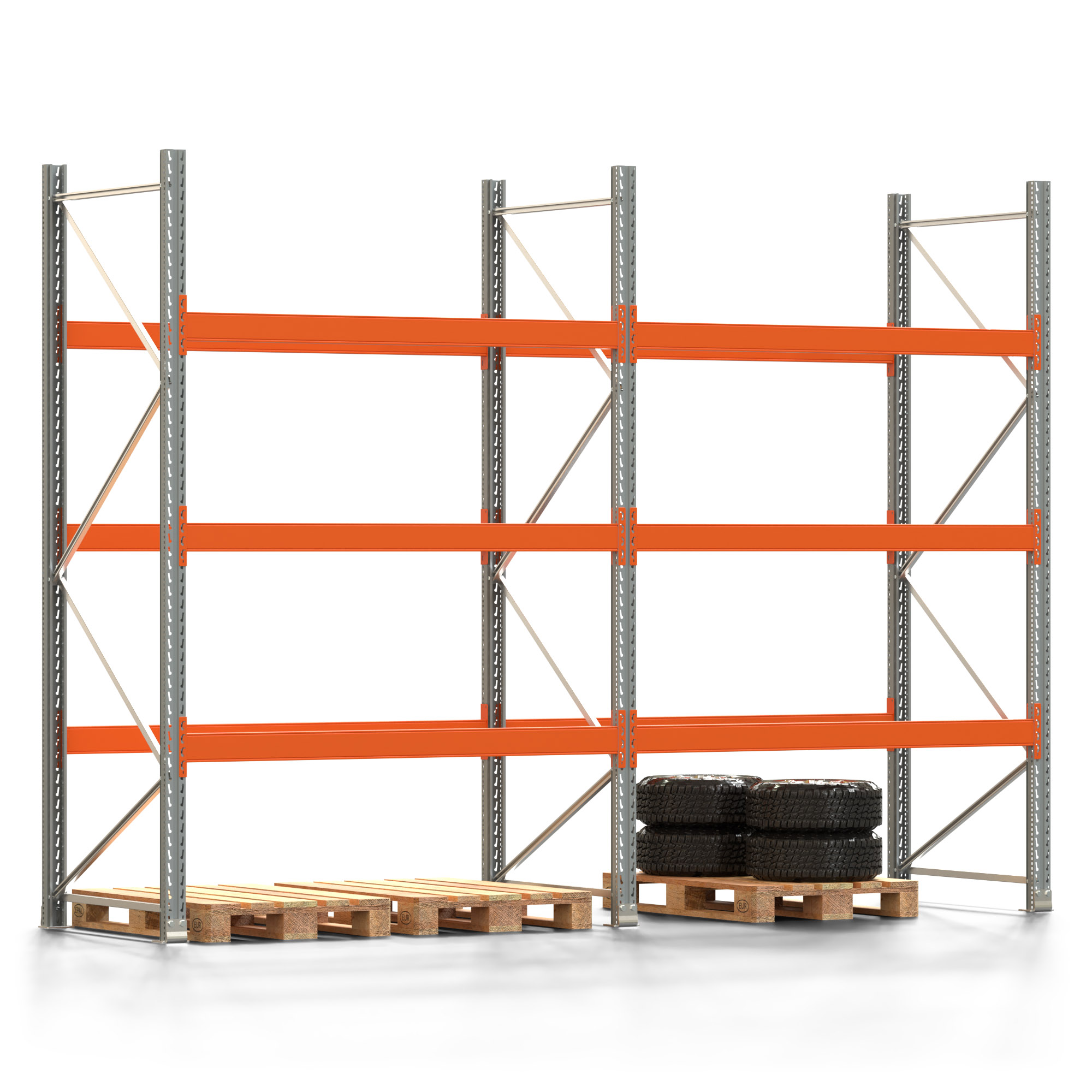 Palettenregal ARTUS - Breite 405,5 cm - Höhe 300 cm - Tiefe 110 cm - 3 Träger-Ebenen - Fachlast 2000 kg - 16 Palettenstellplätze